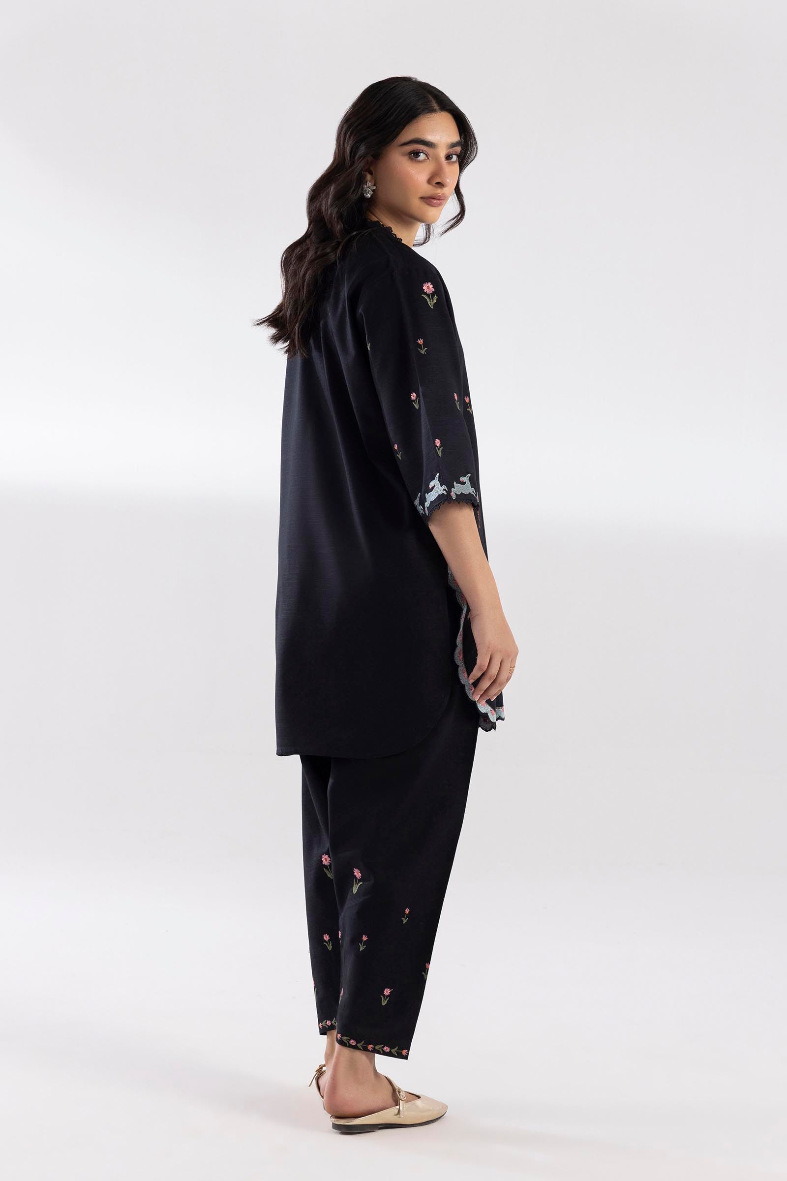 Trouser: Black Slub Khaddar Skinny Shalwar Included