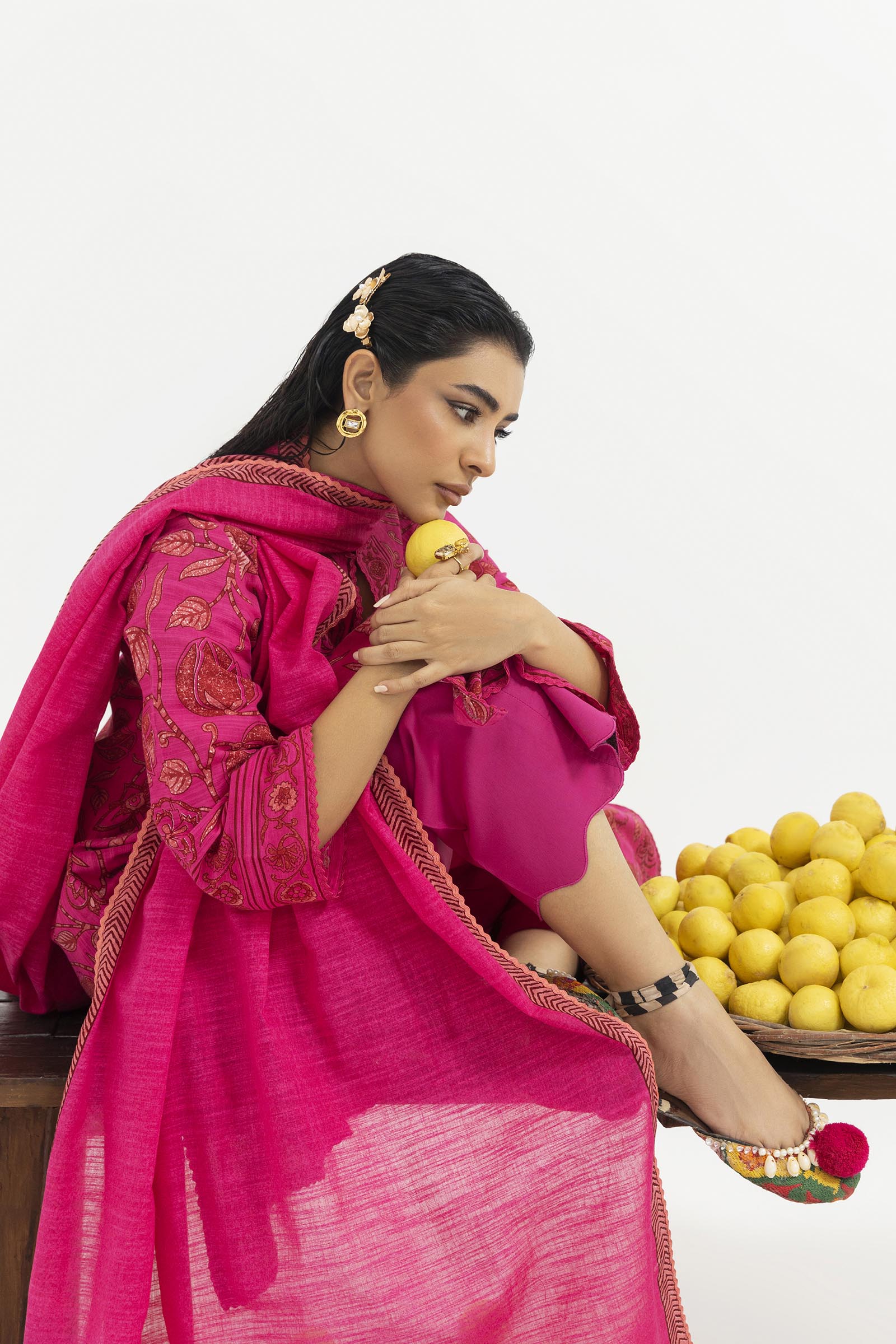 Floral block-print shirt in vibrant pink, paired with a matching dupatta, exuding elegant traditional charm.