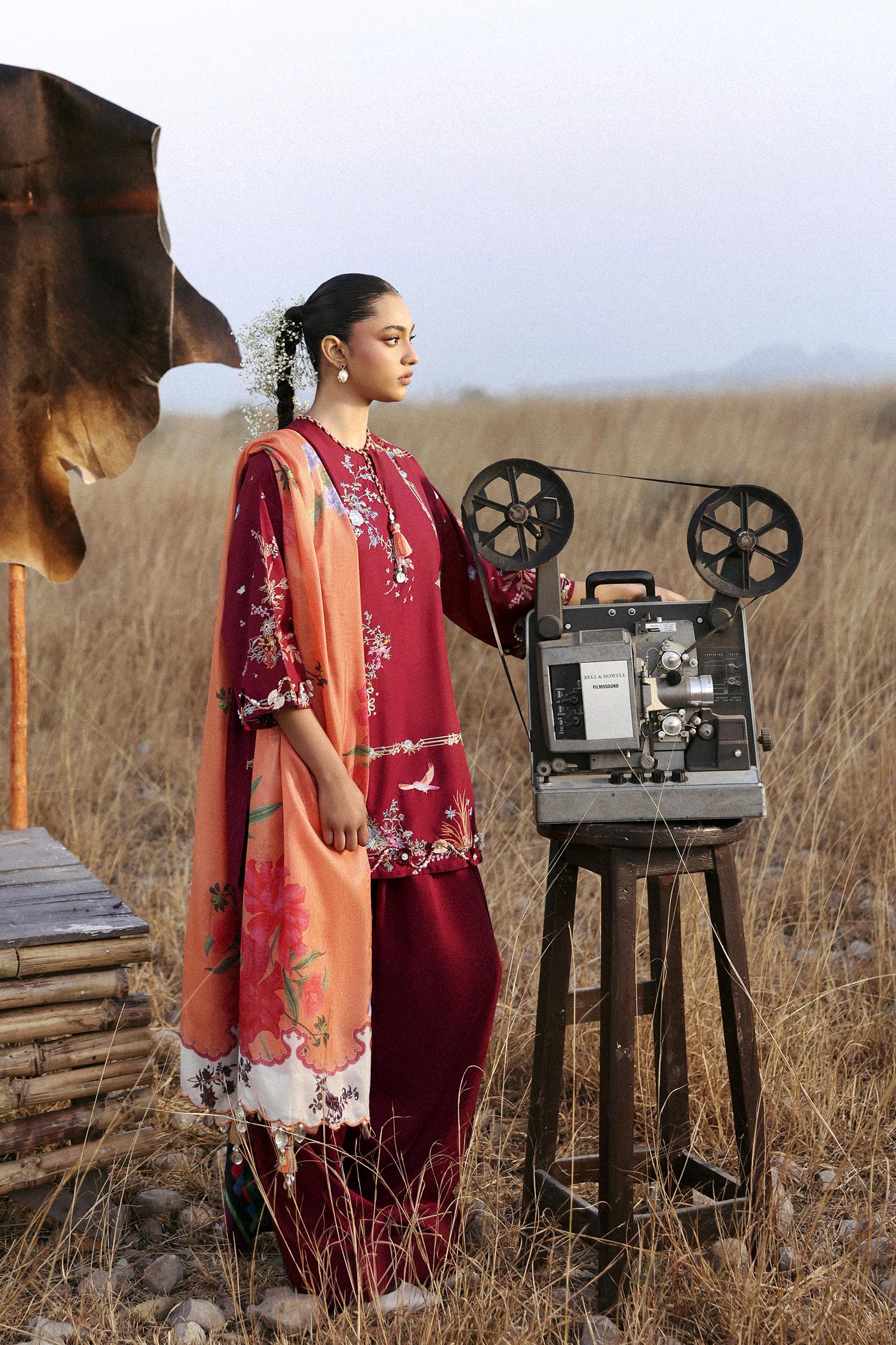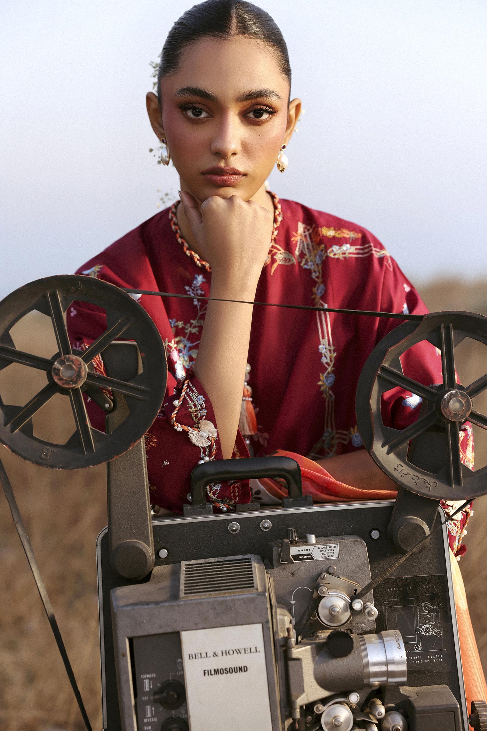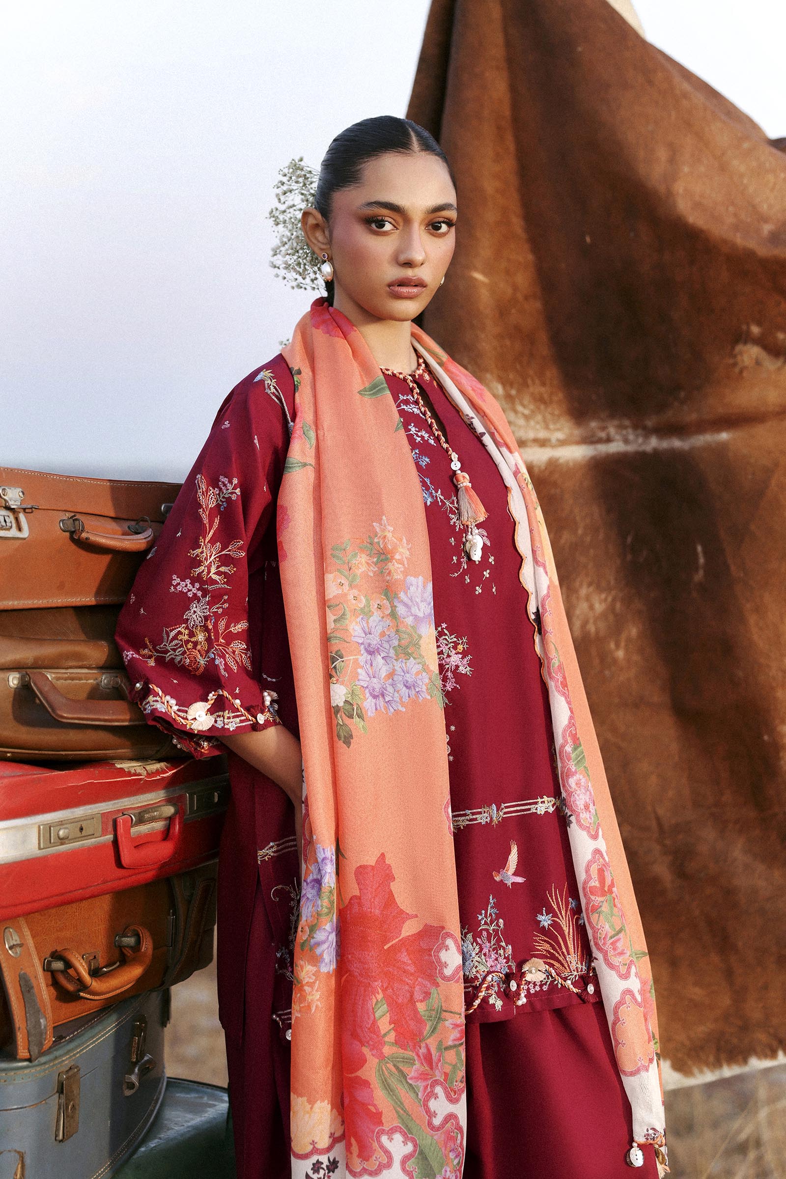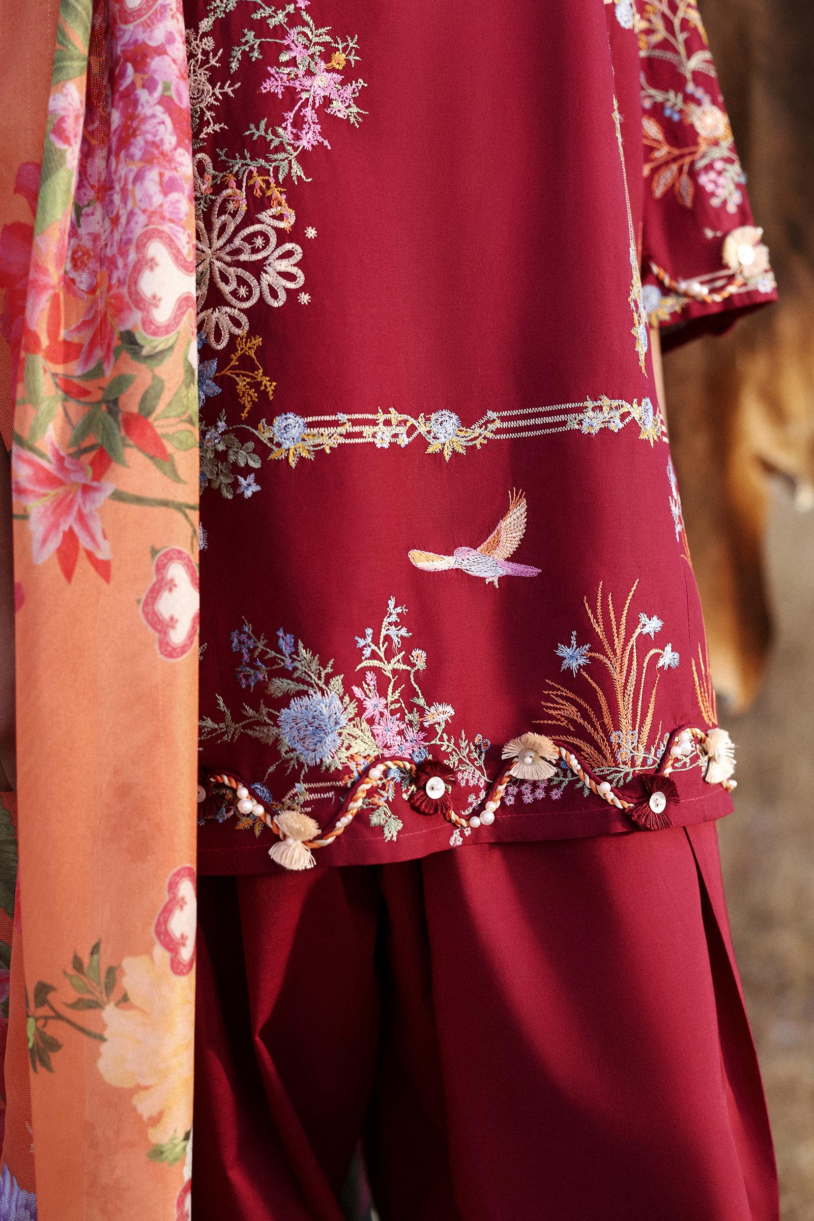 A dynamic balance of colour, print, and embroidery results in a statement look with effortless appeal.
