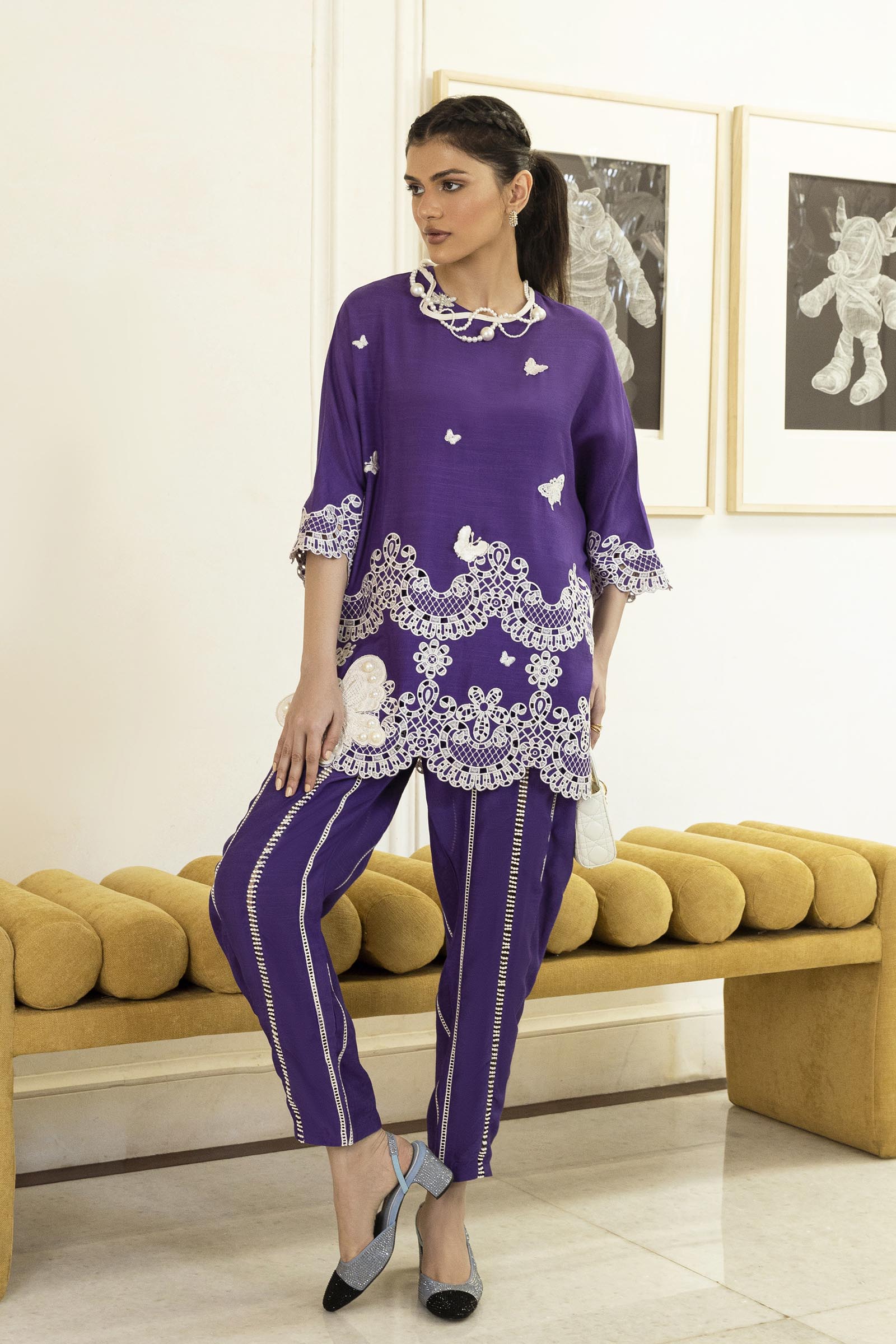 Description: A dreamy duo — embroidered shirt and pants, exquisitely detailed for celebrations and gatherings.