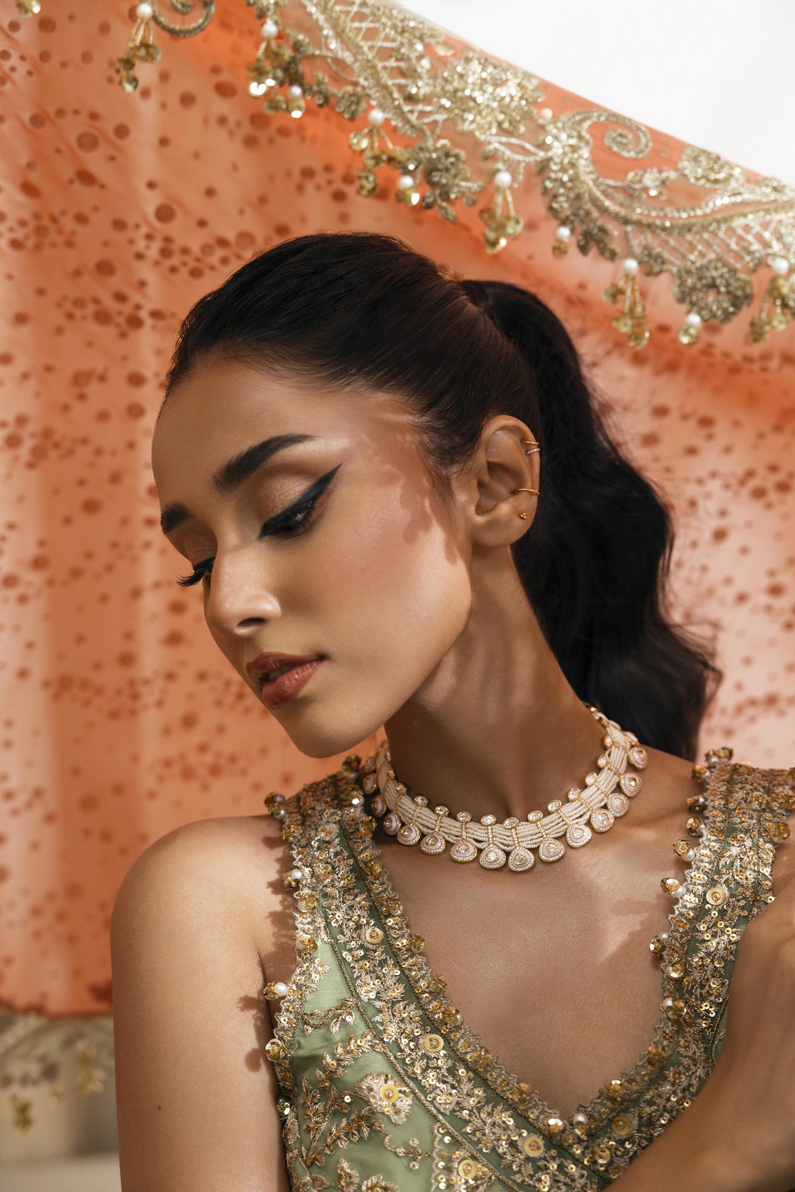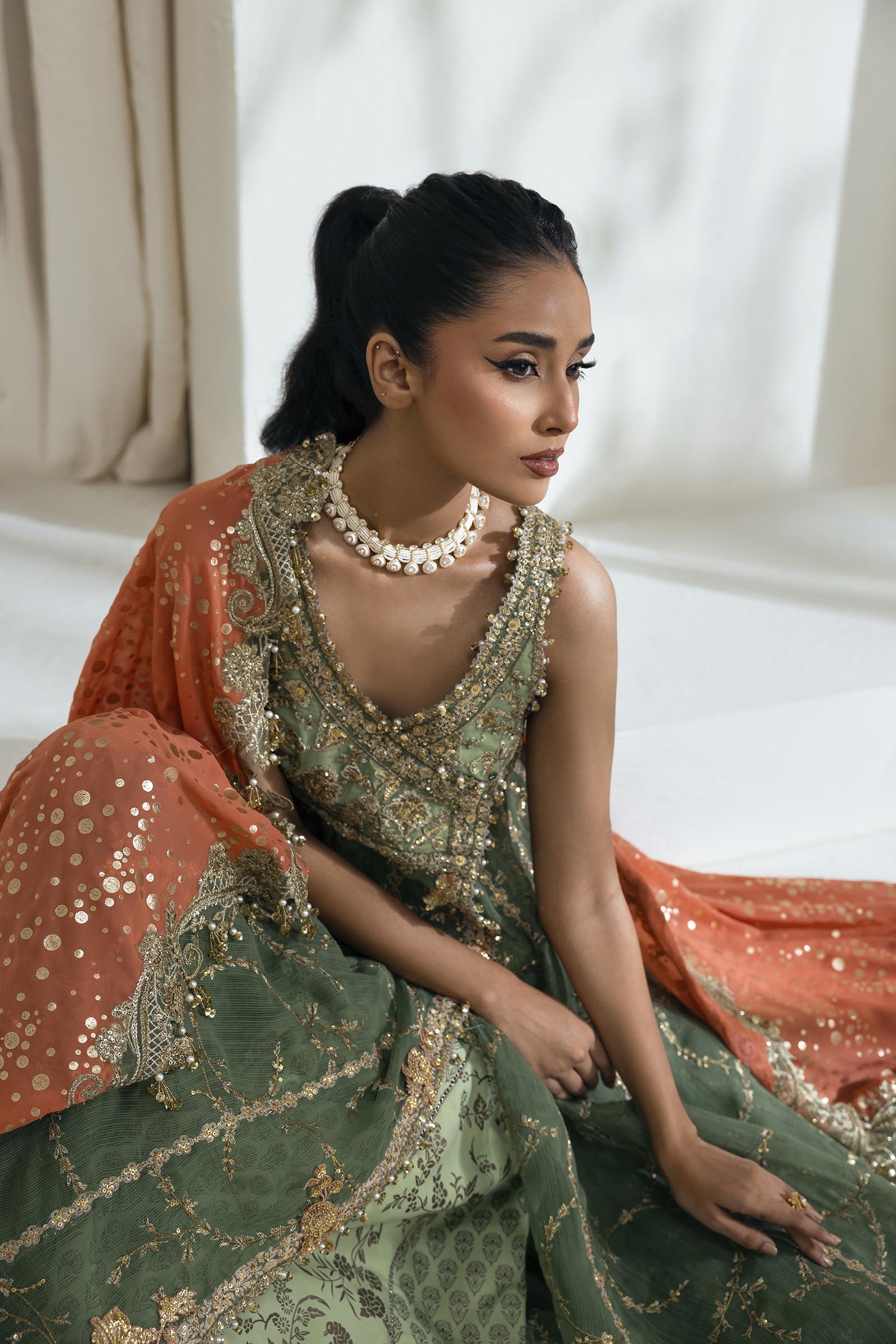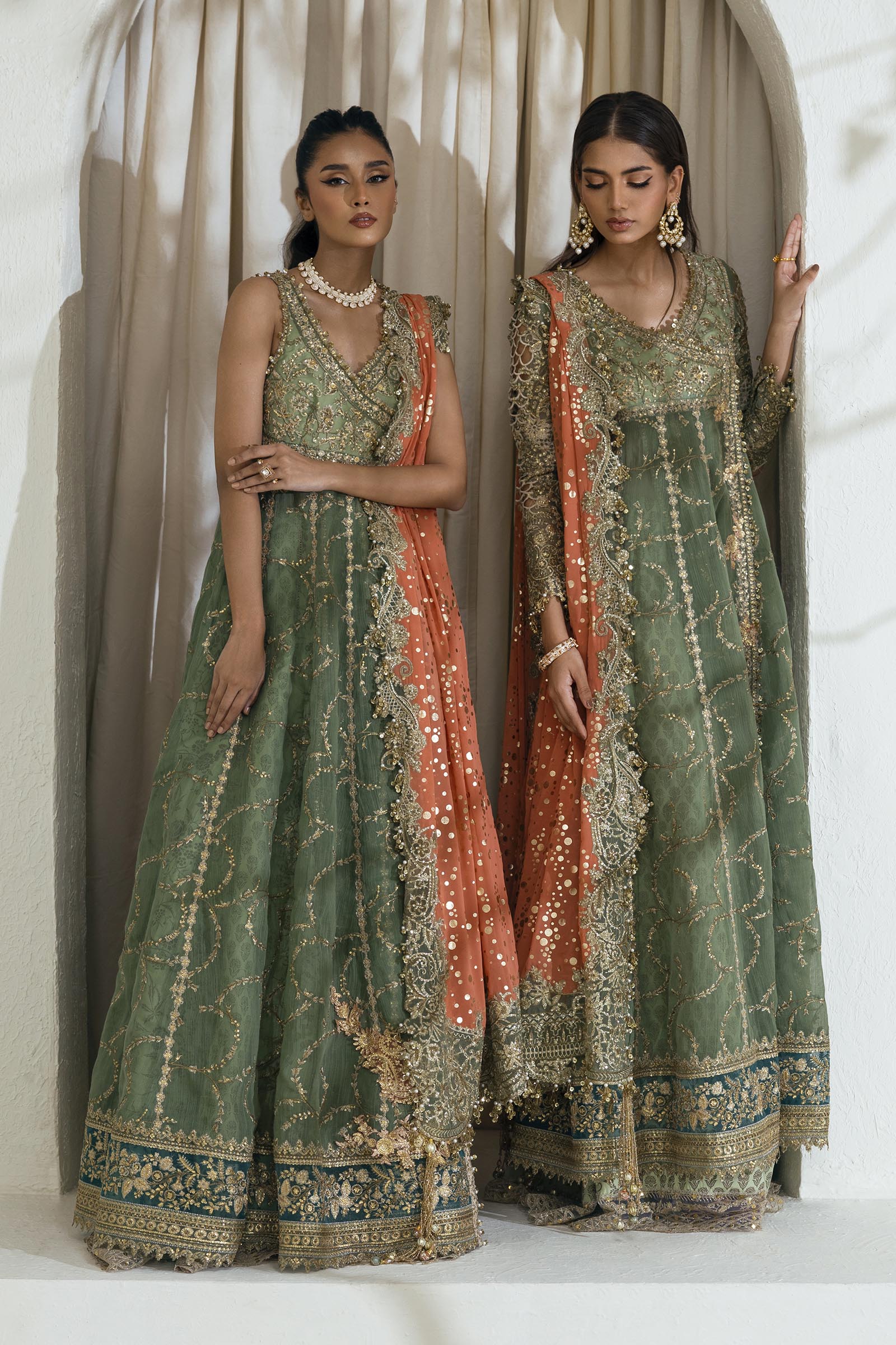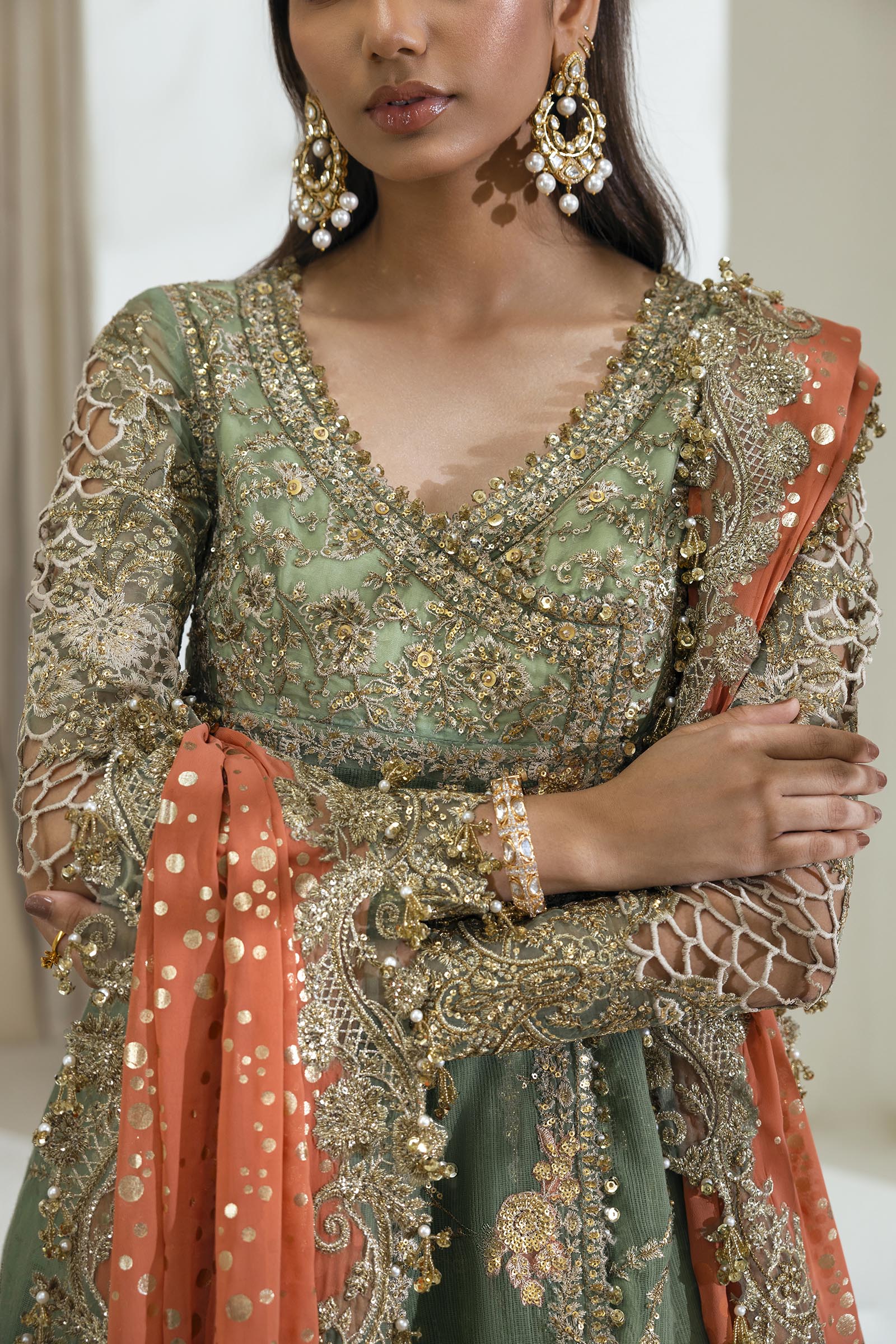 Front Body L&R Hand Embellished Organza Green  1 Pair