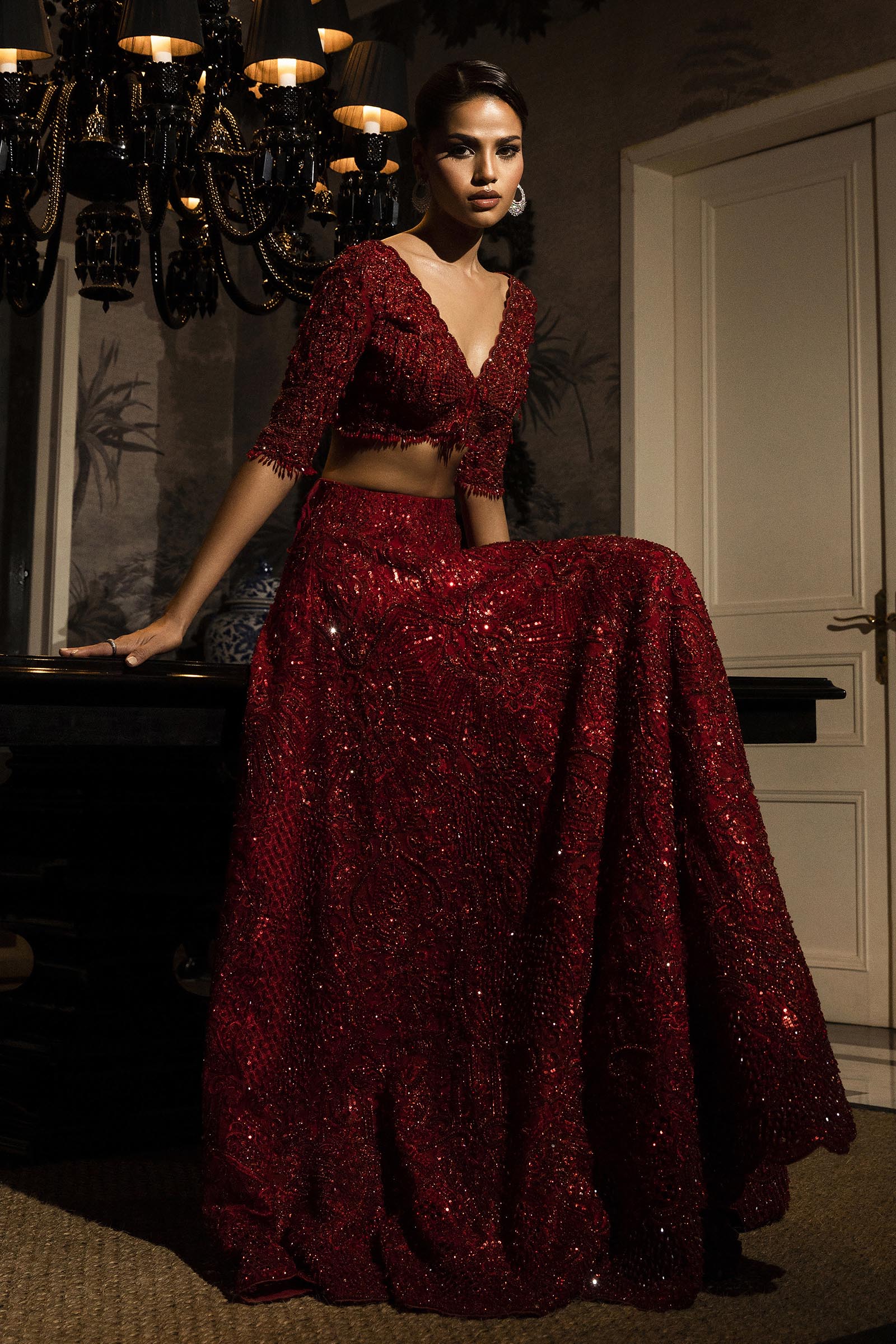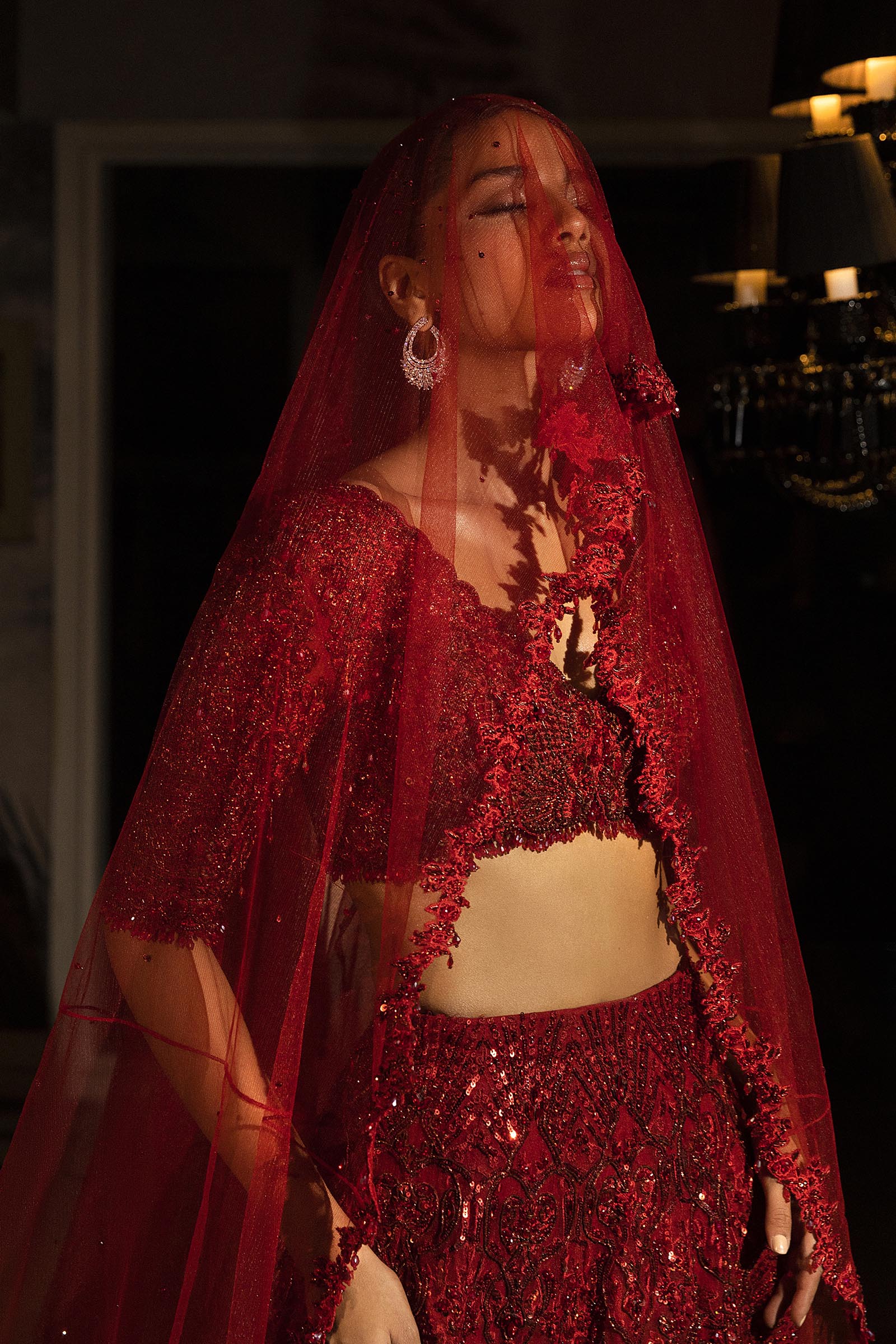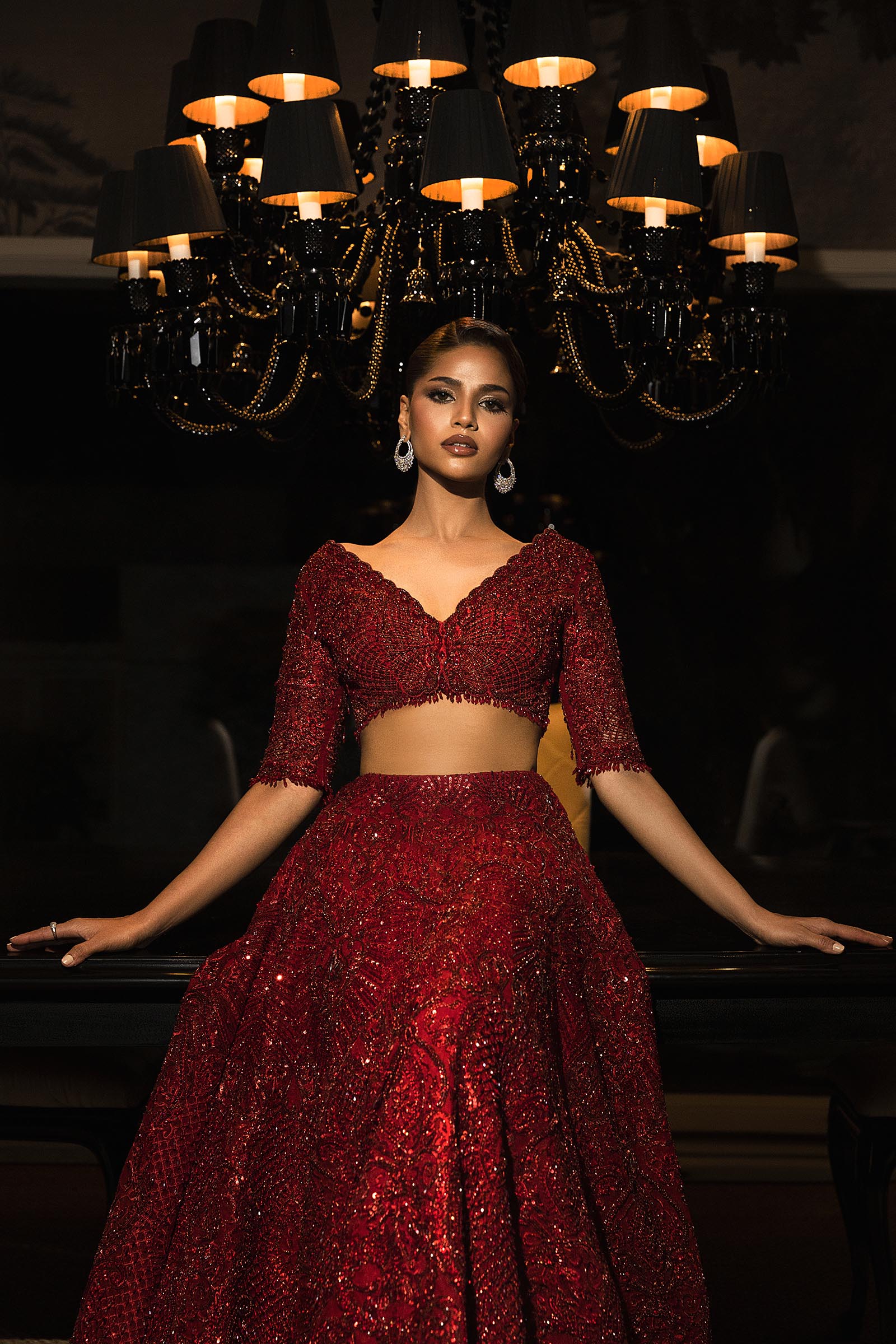 choli, fully adorned with intricate handwork throughout. Every detail shimmers