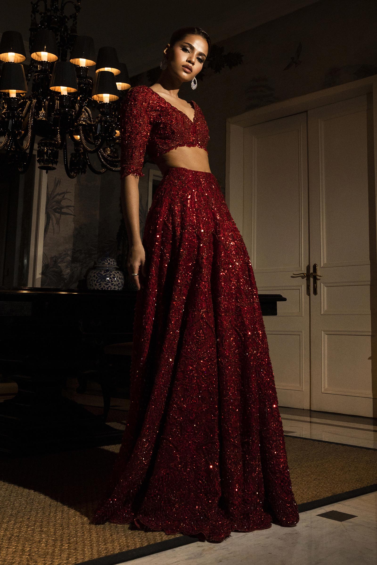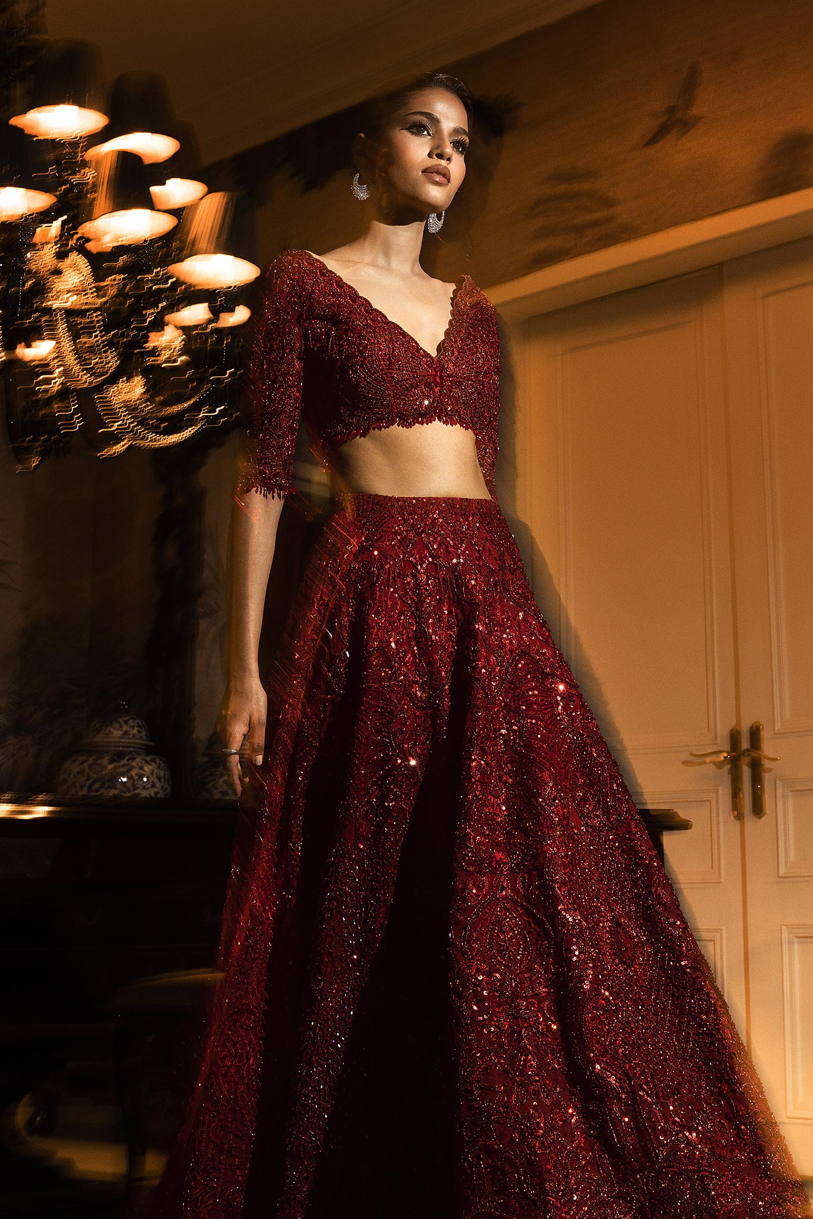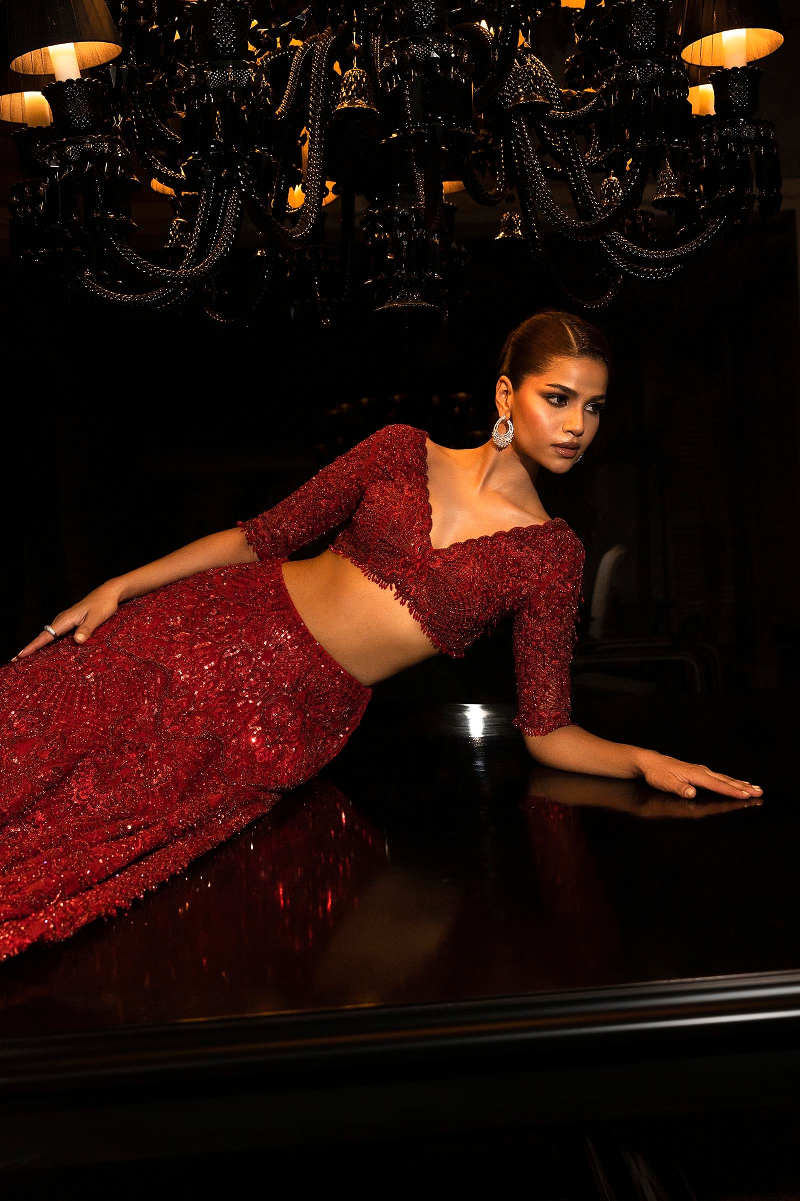 choli, fully adorned with intricate handwork throughout. Every detail shimmers