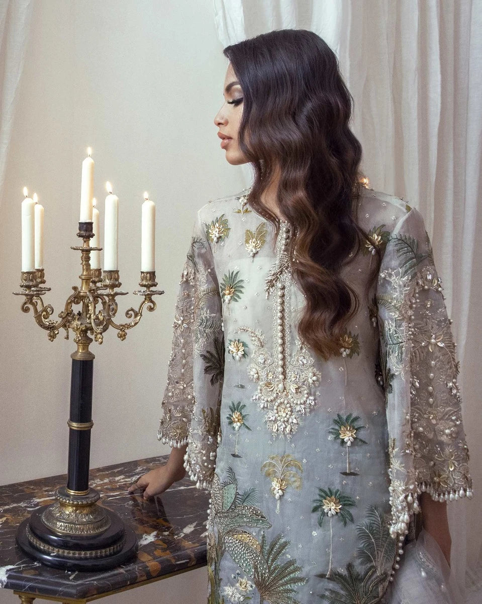 Our in-house design consultant will get in touch with you to assist on sizing and customization. They will personally send over your design calico and color swatches to ensure an ensemble that perfectly meets all your requirements. We tailor each outfit to your size and preference. For all international orders, our consultants will be available to meet with you via Zoom to get your measurements and tailor the outfit according to your size. We hope to customize your outfit to perfection to deliver the best couture ensemble to you.