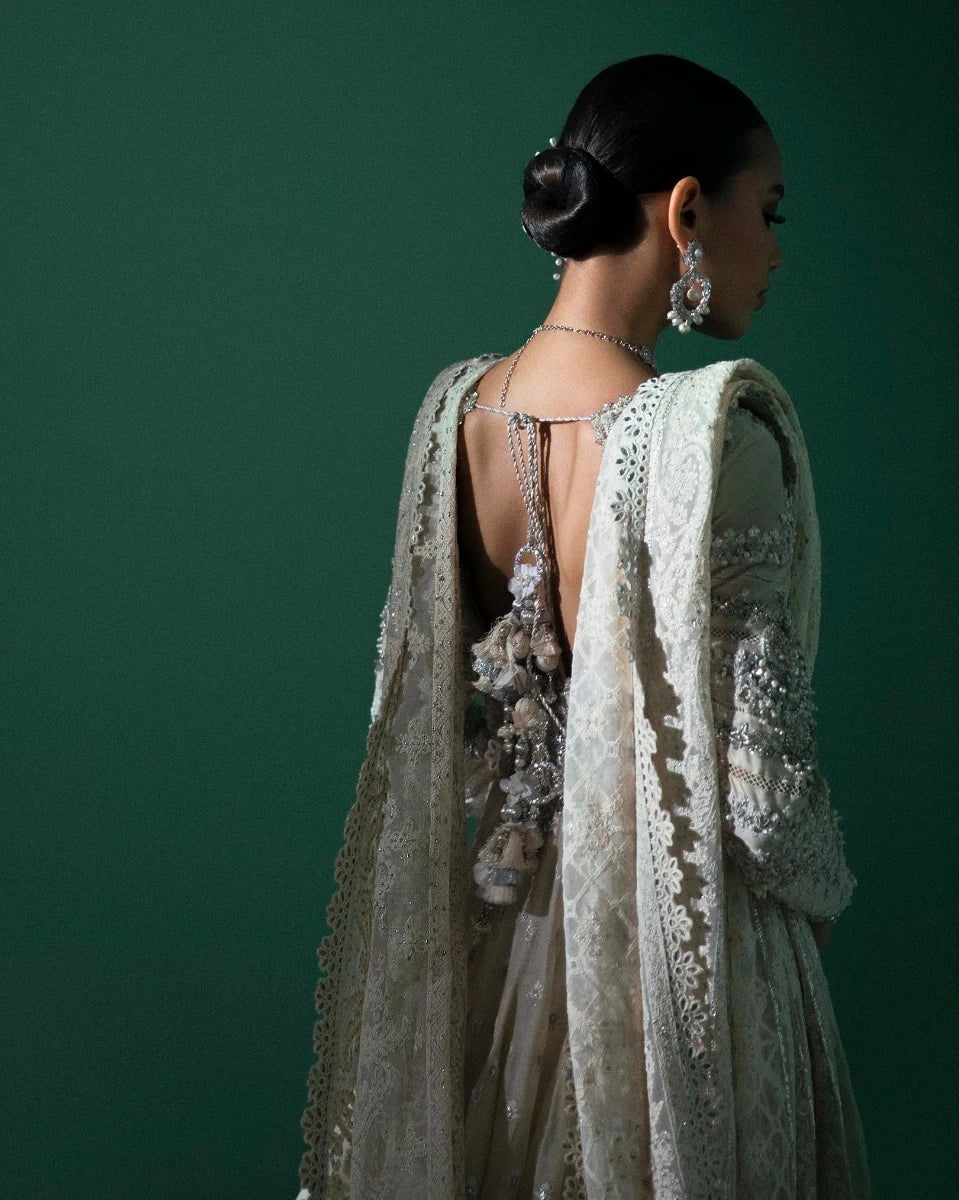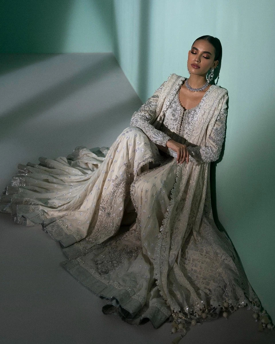 Our "Noor" collection is poetic, opulent, and luxuriant in every way. This exquisite ensemble, rendered in threads of grandeur and draped in themes of a bygone era, speaks for itself.