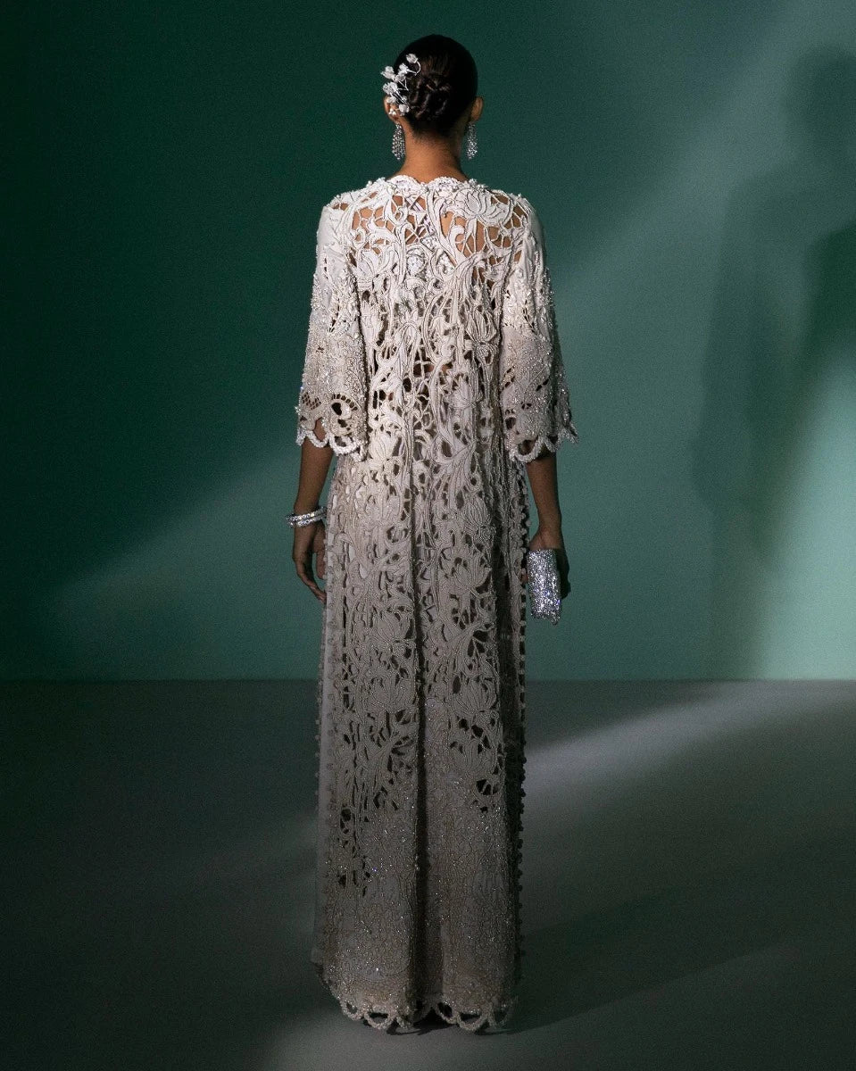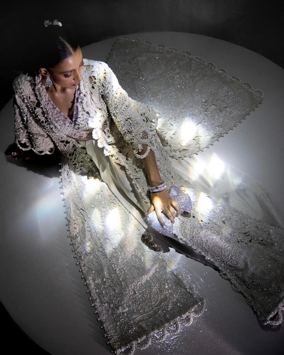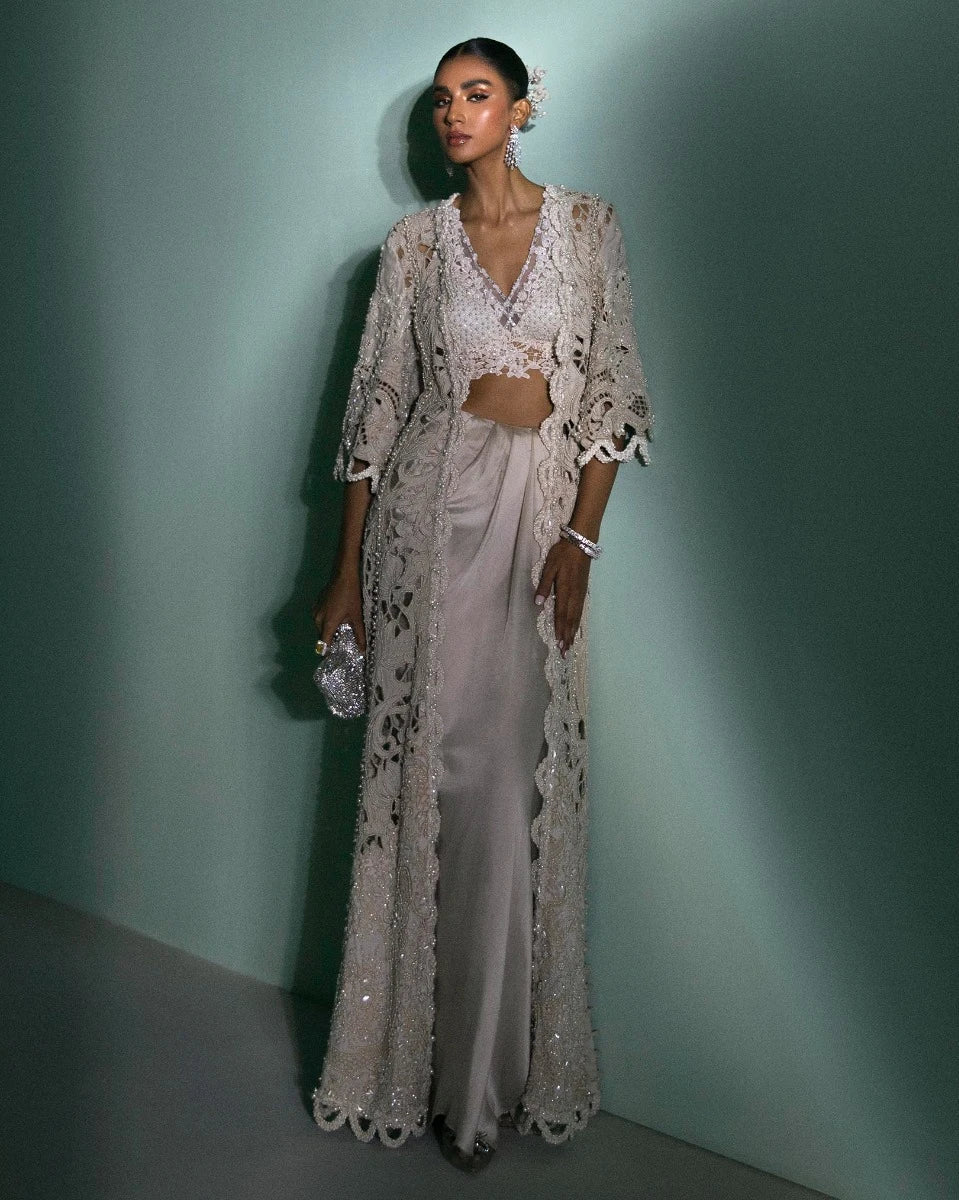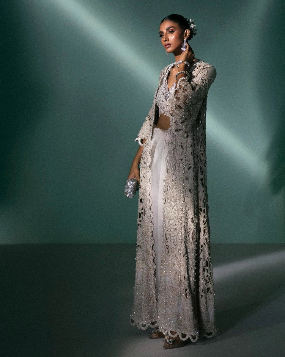 Our "Noor" collection is poetic, opulent, and luxuriant in every way. This exquisite ensemble, rendered in threads of grandeur and draped in themes of a bygone era, speaks for itself.
