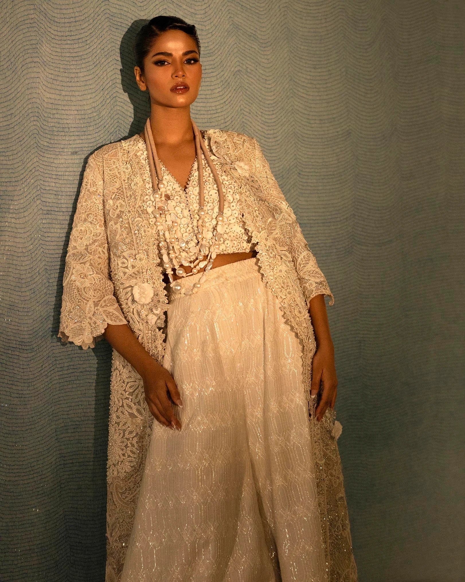 Our in-house design consultant will get in touch with you to assist on sizing and customization. They will personally send over your design calico and color swatches to ensure an ensemble that perfectly meets all your requirements. We tailor each outfit to your size and preference. For all international orders, our consultants will be available to meet with you via Zoom to get your measurements and tailor the outfit according to your size. We hope to customize your outfit to perfection to deliver the best couture ensemble to you.