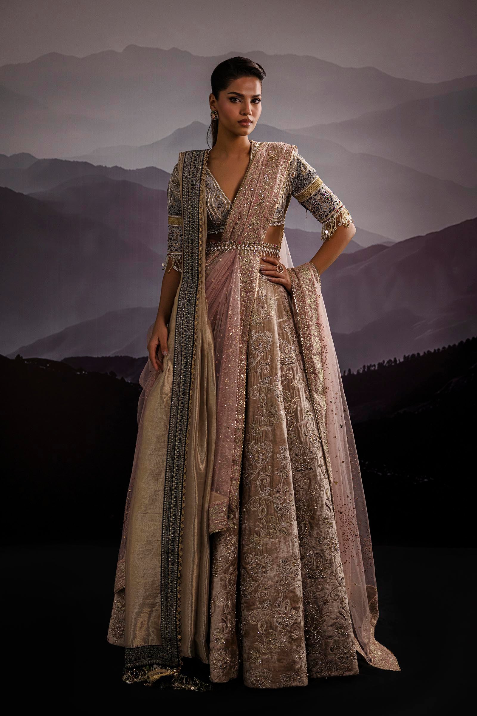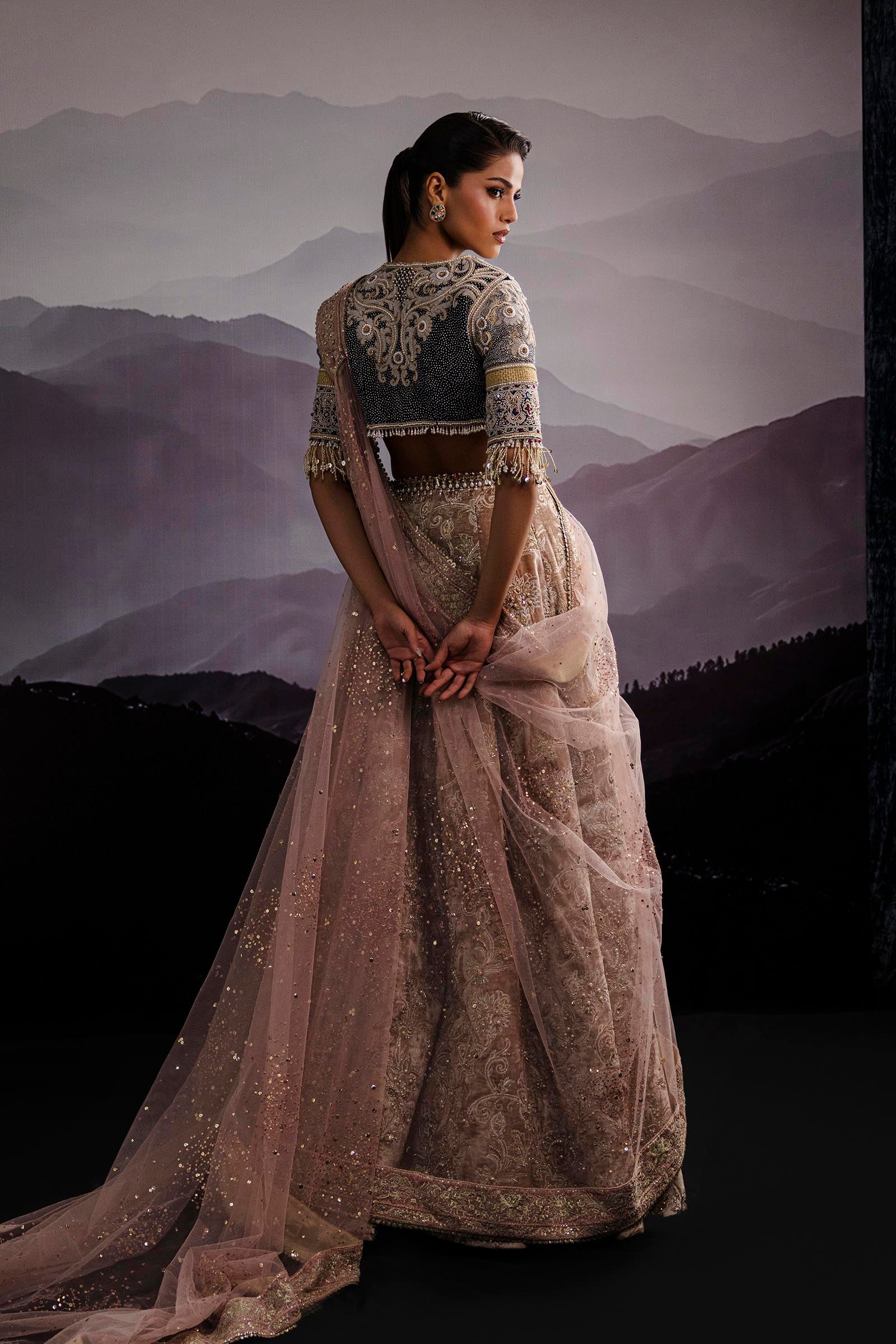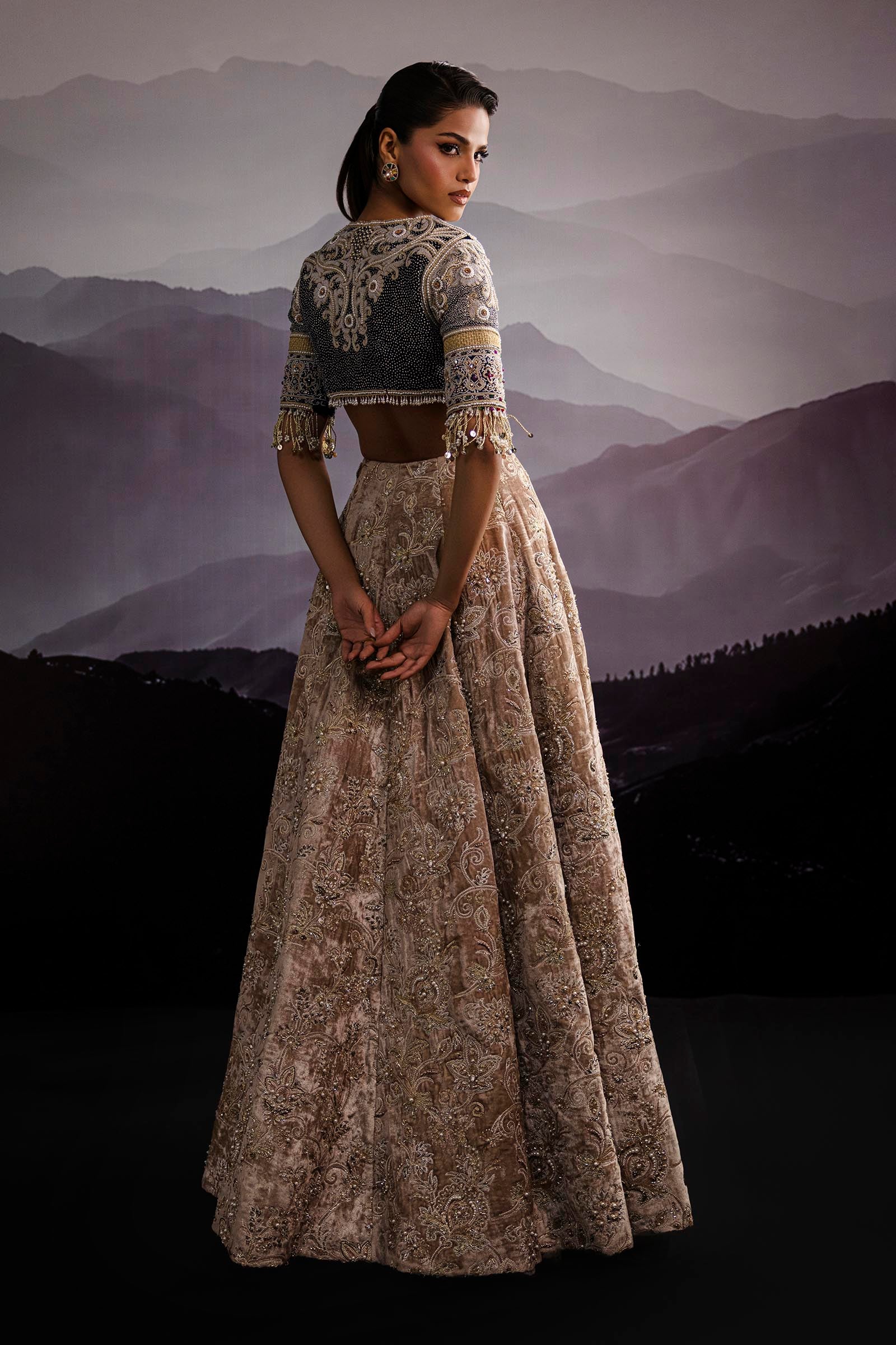 Our in-house design consultant will get in touch with you to assist on sizing and customization. They will personally send over your design calico and color swatches to ensure an ensemble that perfectly meets all your requirements. We tailor each outfit to your size and preference. For all international orders, our consultants will be available to meet with you via Zoom to get your measurements and tailor the outfit according to your size. We hope to customize your outfit to perfection to deliver the best couture ensemble to you.