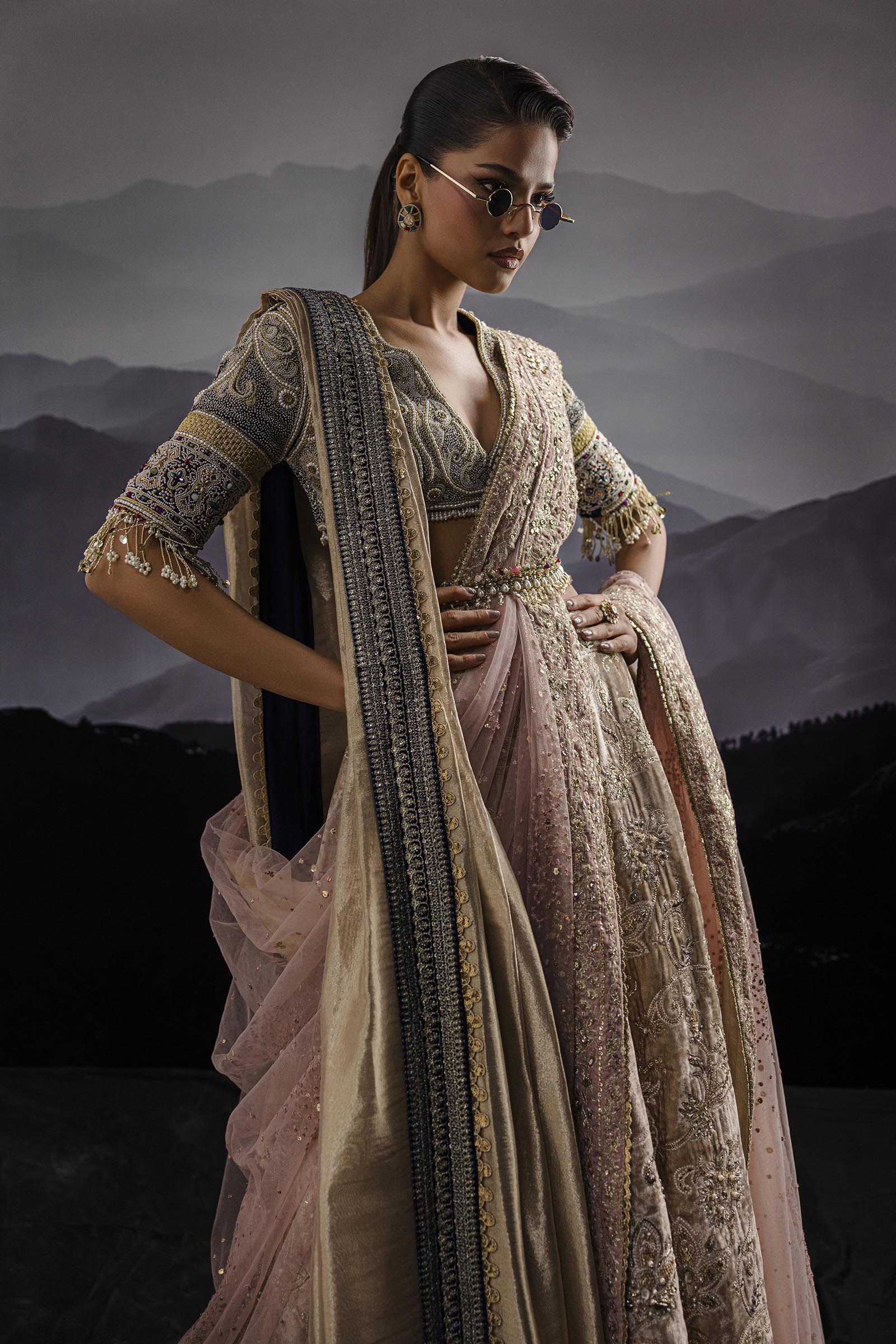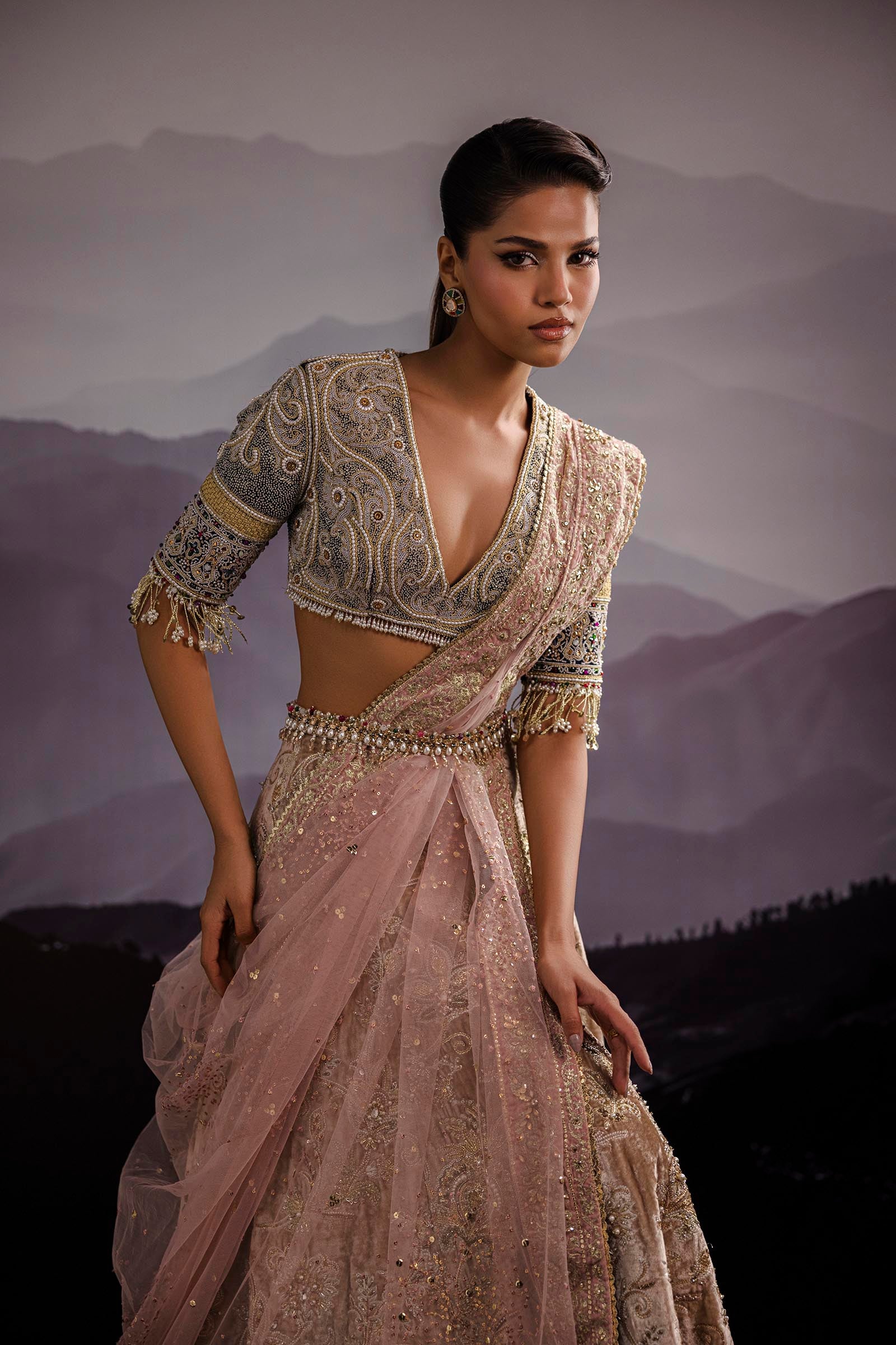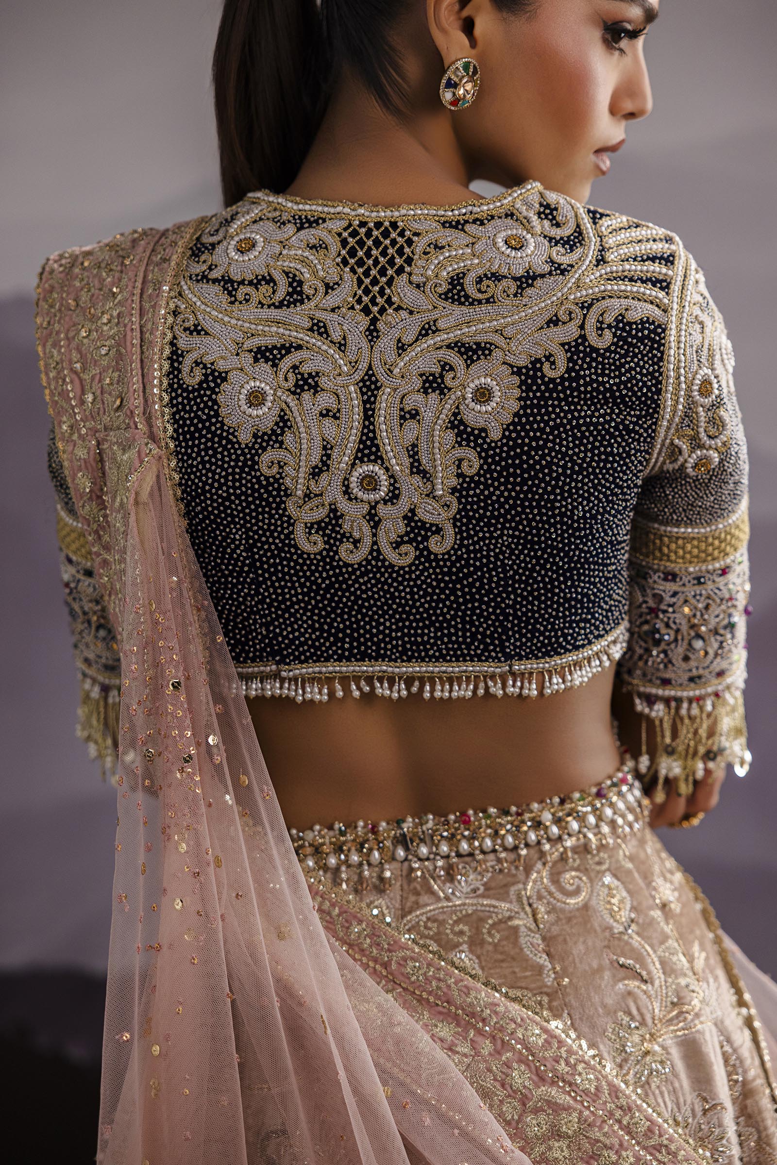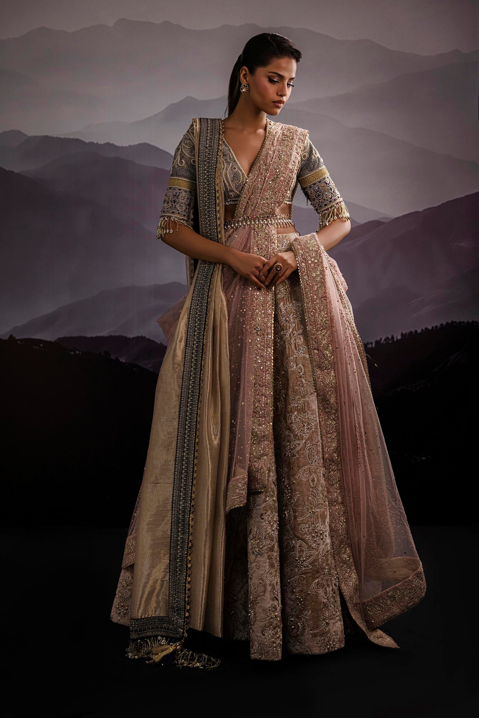 Our in-house design consultant will get in touch with you to assist on sizing and customization. They will personally send over your design calico and color swatches to ensure an ensemble that perfectly meets all your requirements. We tailor each outfit to your size and preference. For all international orders, our consultants will be available to meet with you via Zoom to get your measurements and tailor the outfit according to your size. We hope to customize your outfit to perfection to deliver the best couture ensemble to you.