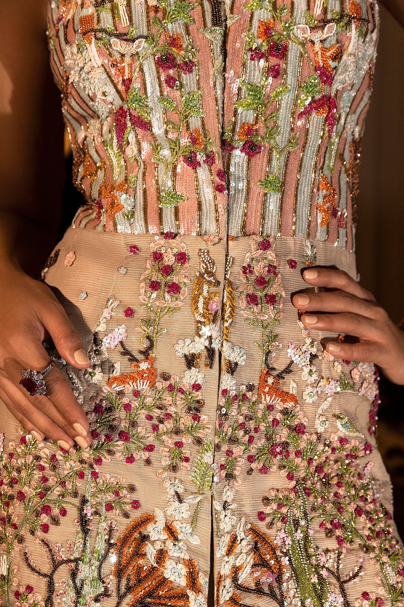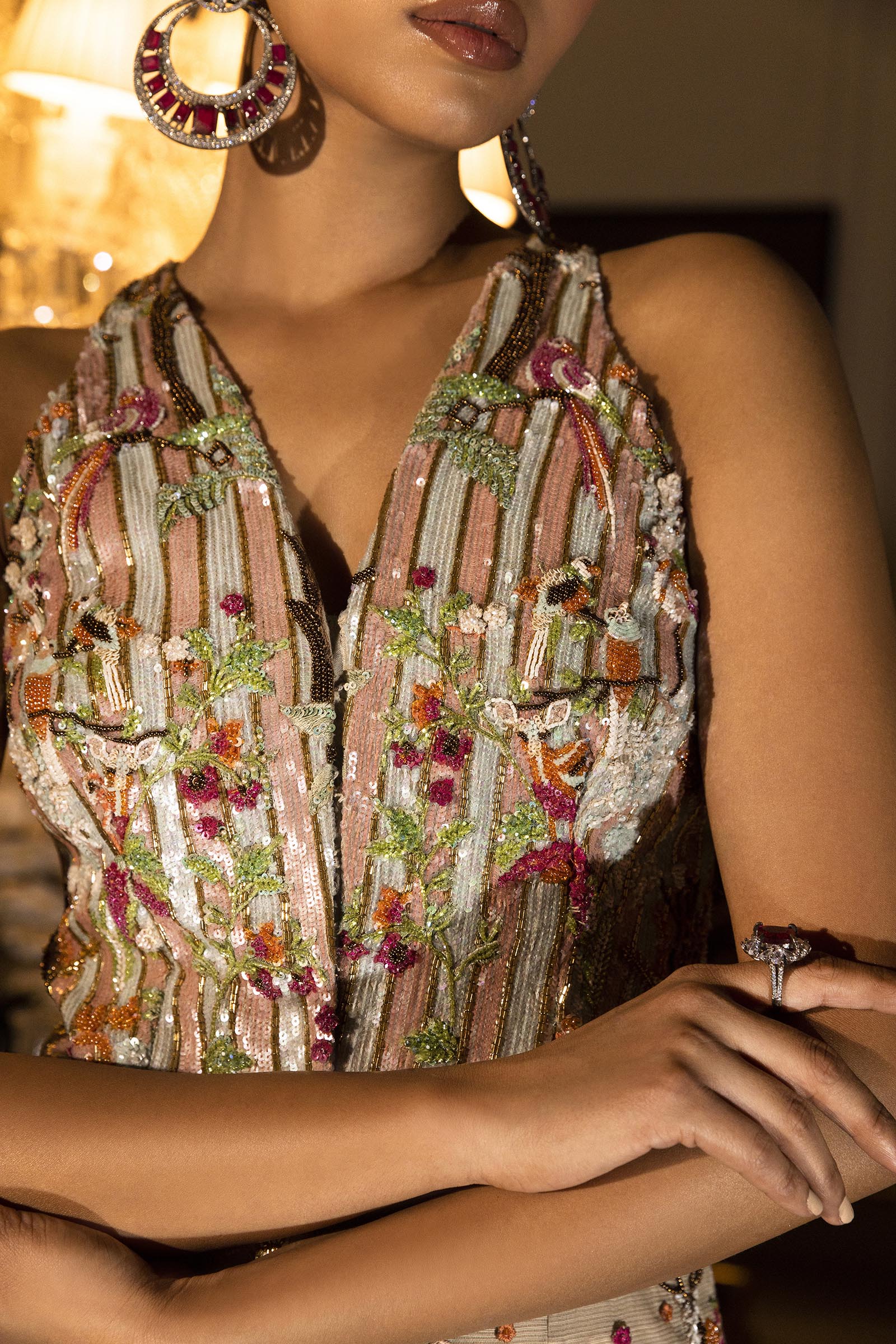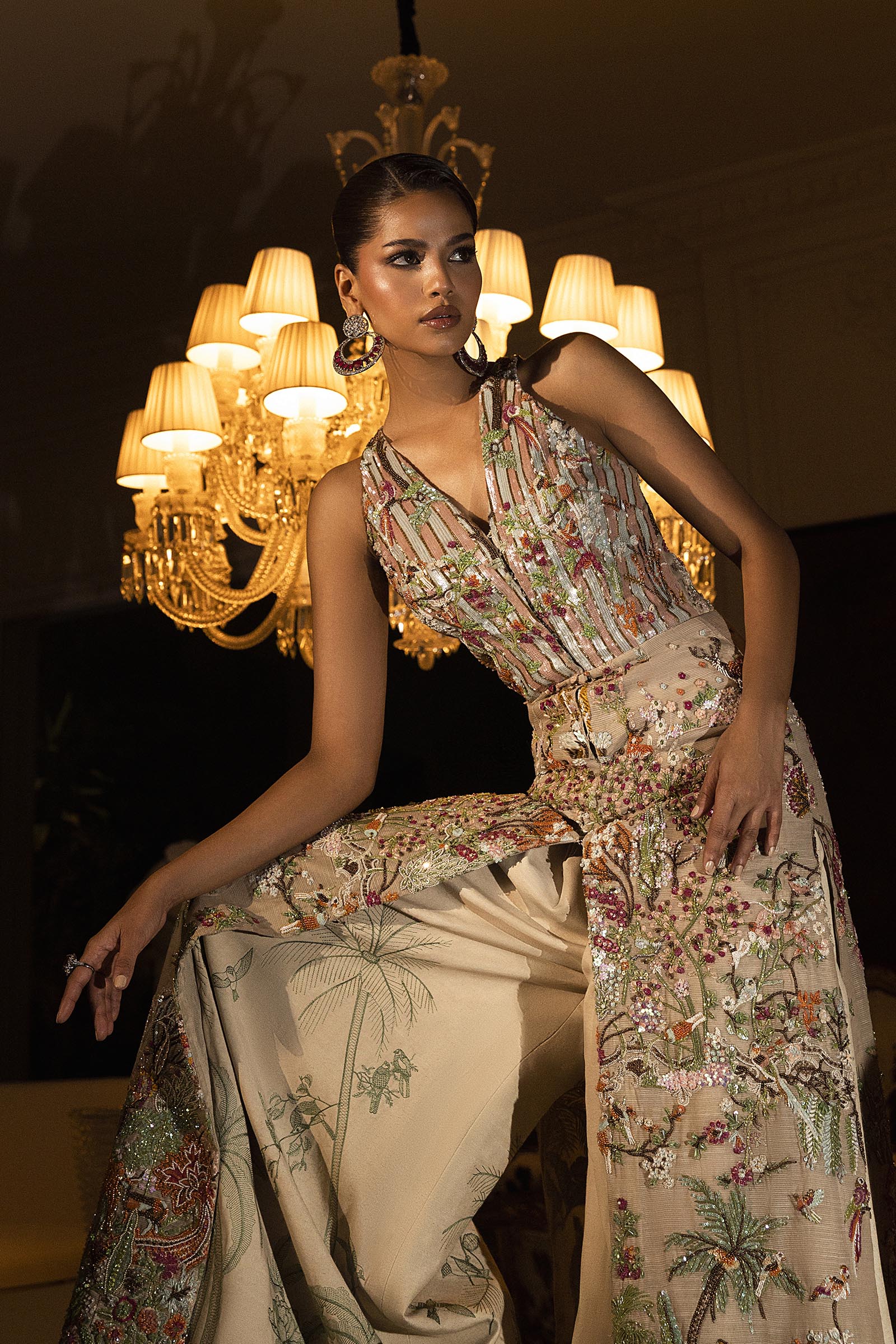 Our in-house design consultant will get in touch with you to assist on sizing and customization. They will personally send over your design calico and color swatches to ensure an ensemble that perfectly meets all your requirements. We tailor each outfit to your size and preference. For all international orders, our consultants will be available to meet with you via Zoom to get your measurements and tailor the outfit according to your size. We hope to customize your outfit to perfection to deliver the best couture ensemble to you.