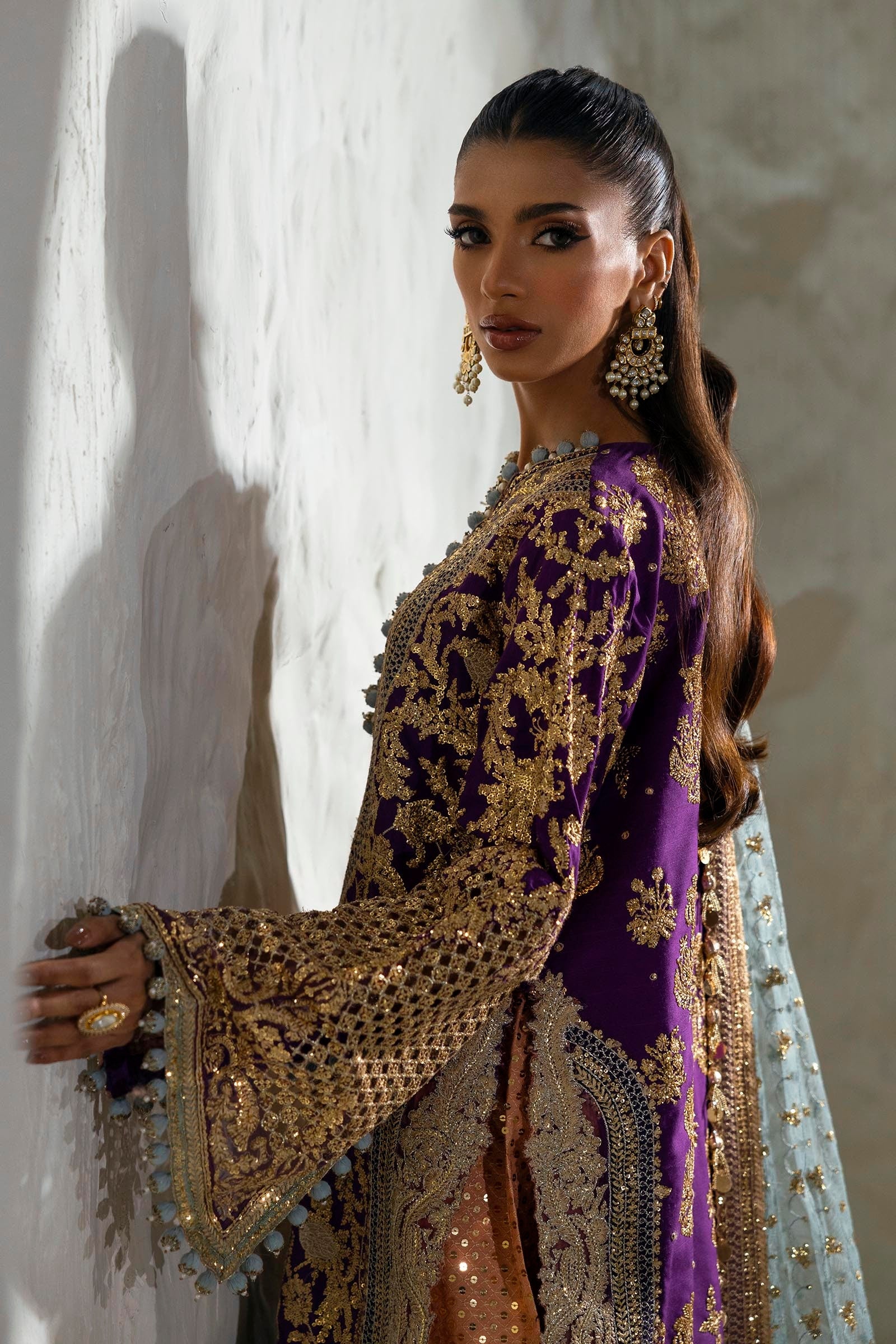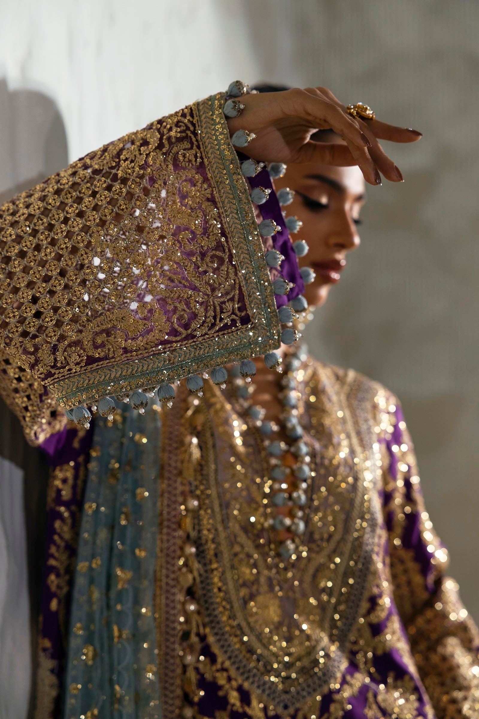 Sleeves Jaal Cutwork Purple Organza  1 Pair