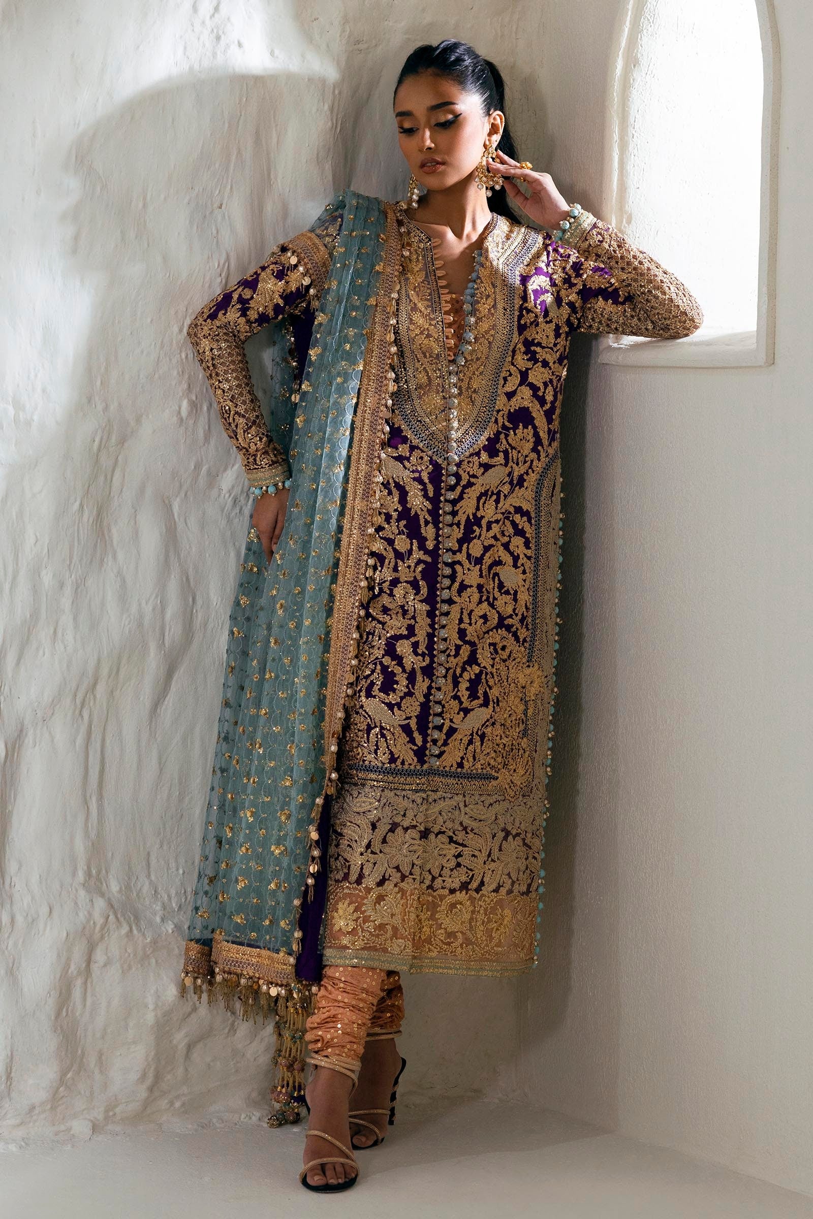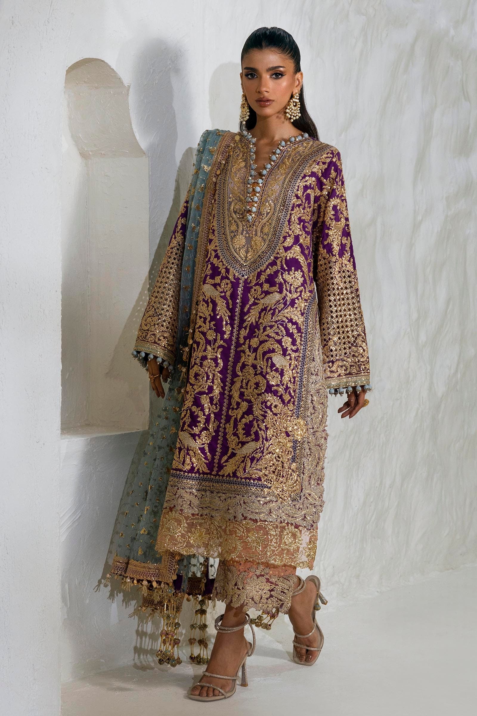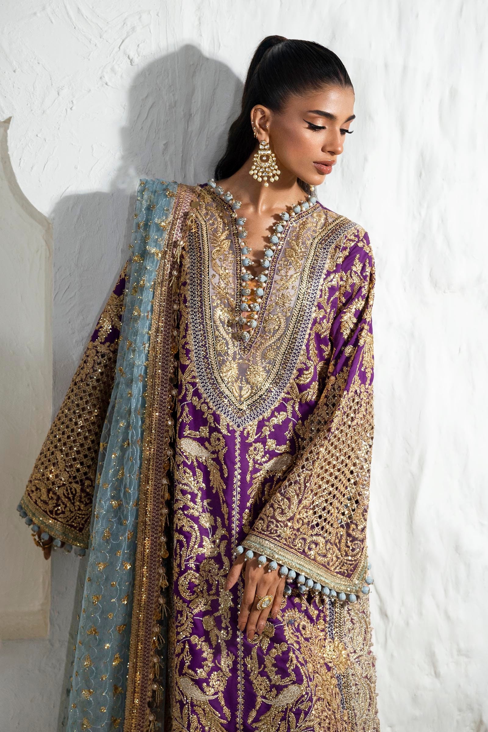 Dupatta Embroidered Egg Ferozi Net 2.5 Meters