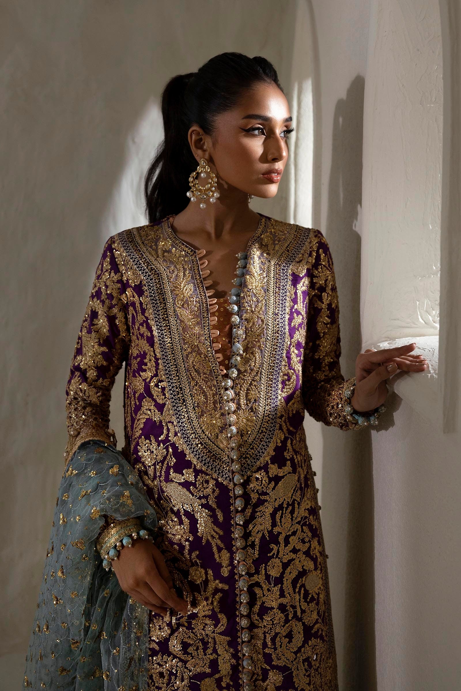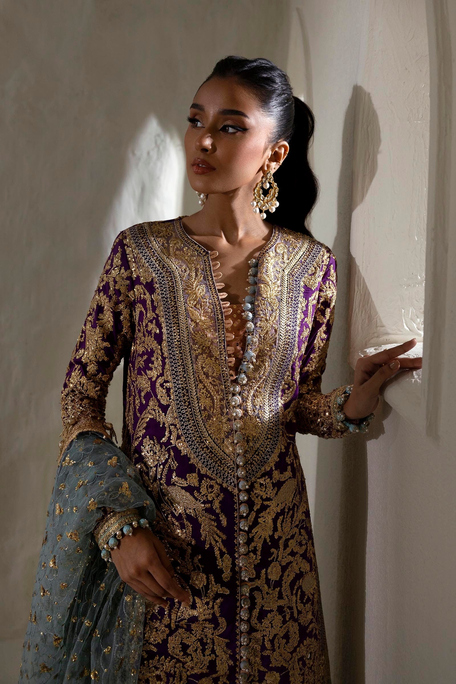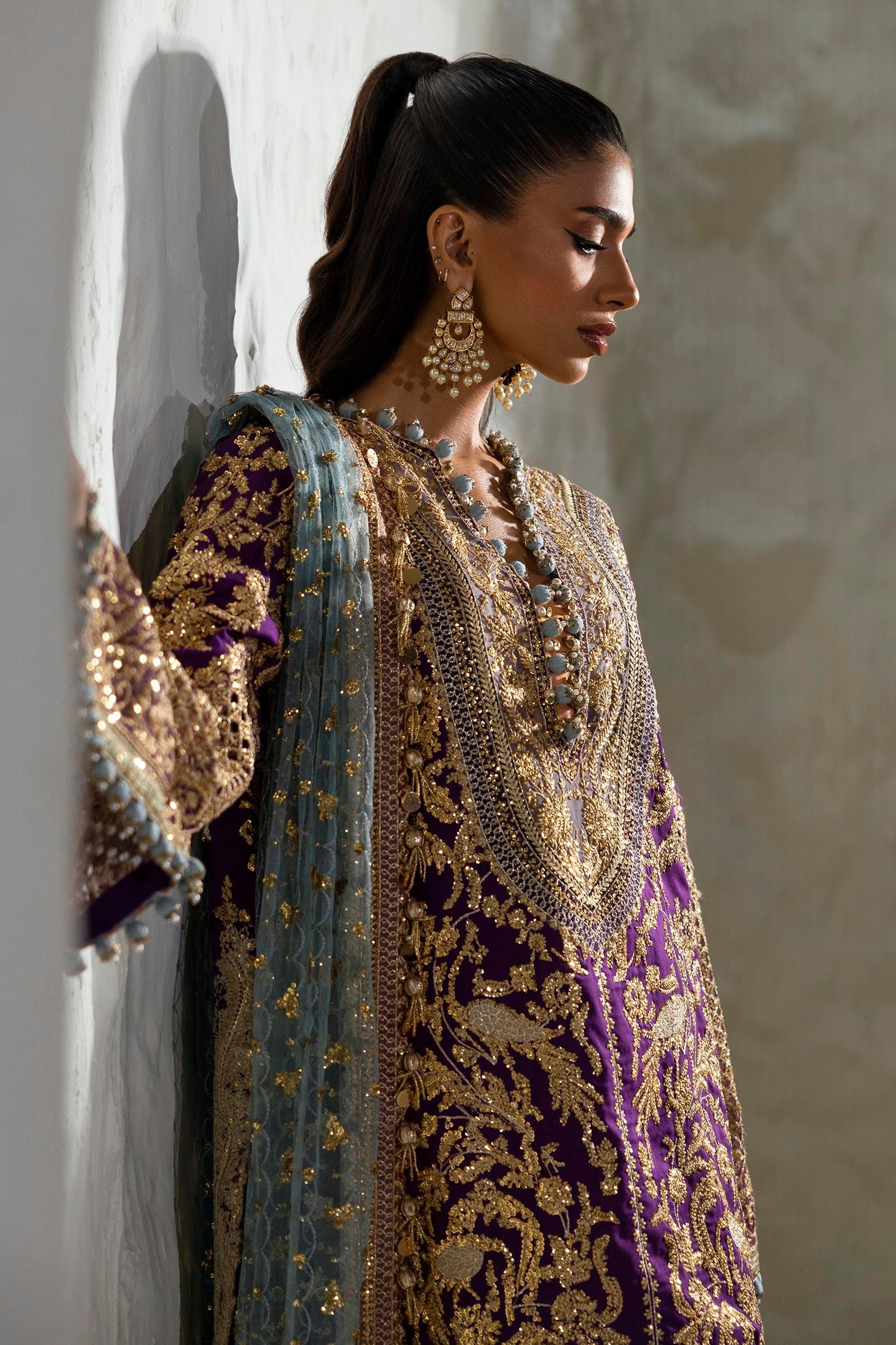 Dupatta Embroidered Egg Ferozi Net 2.5 Meters
