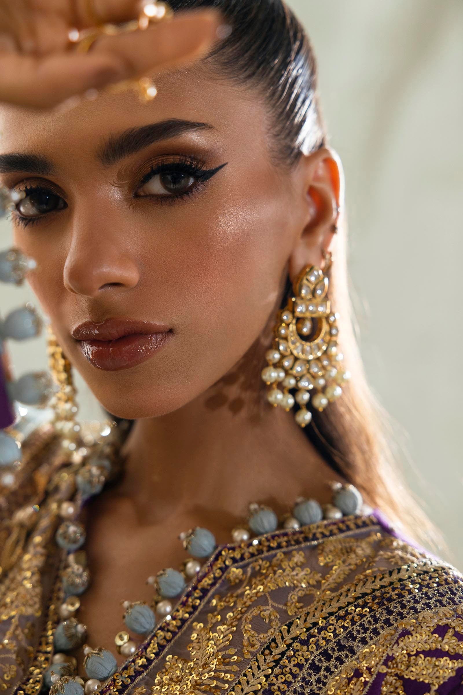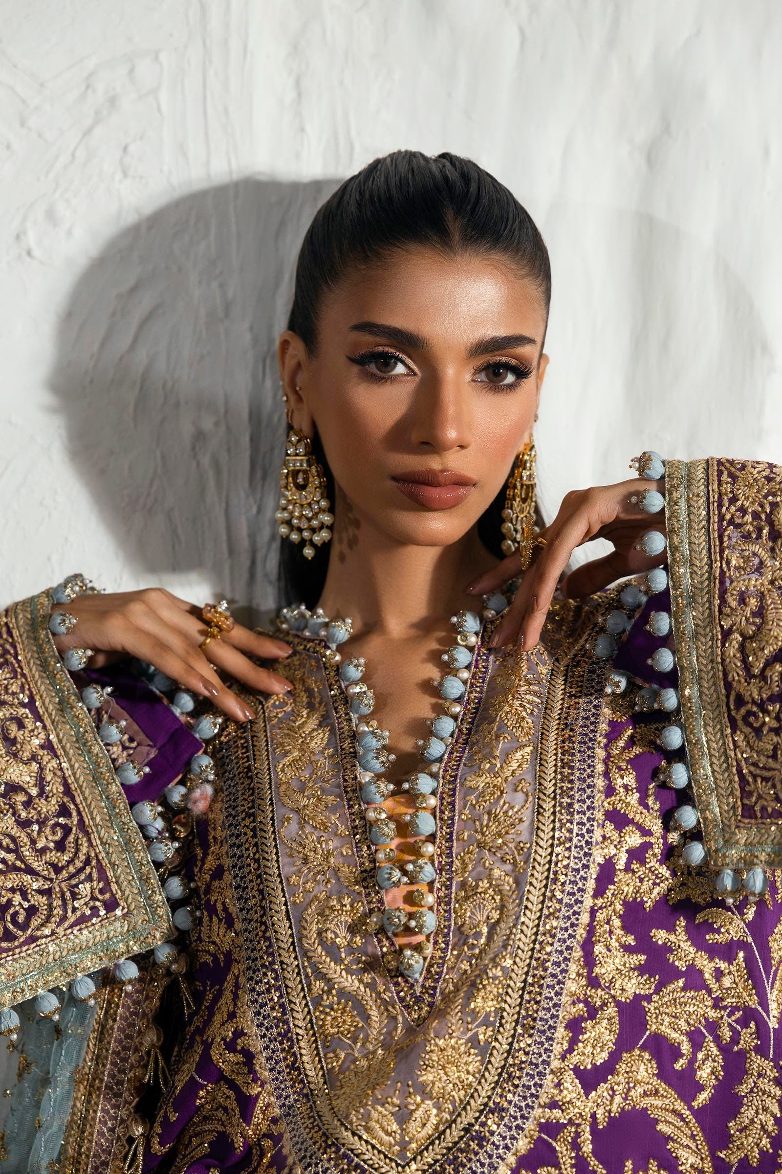 Sleeves Embroidered Purple Raw Silk 1 Pair