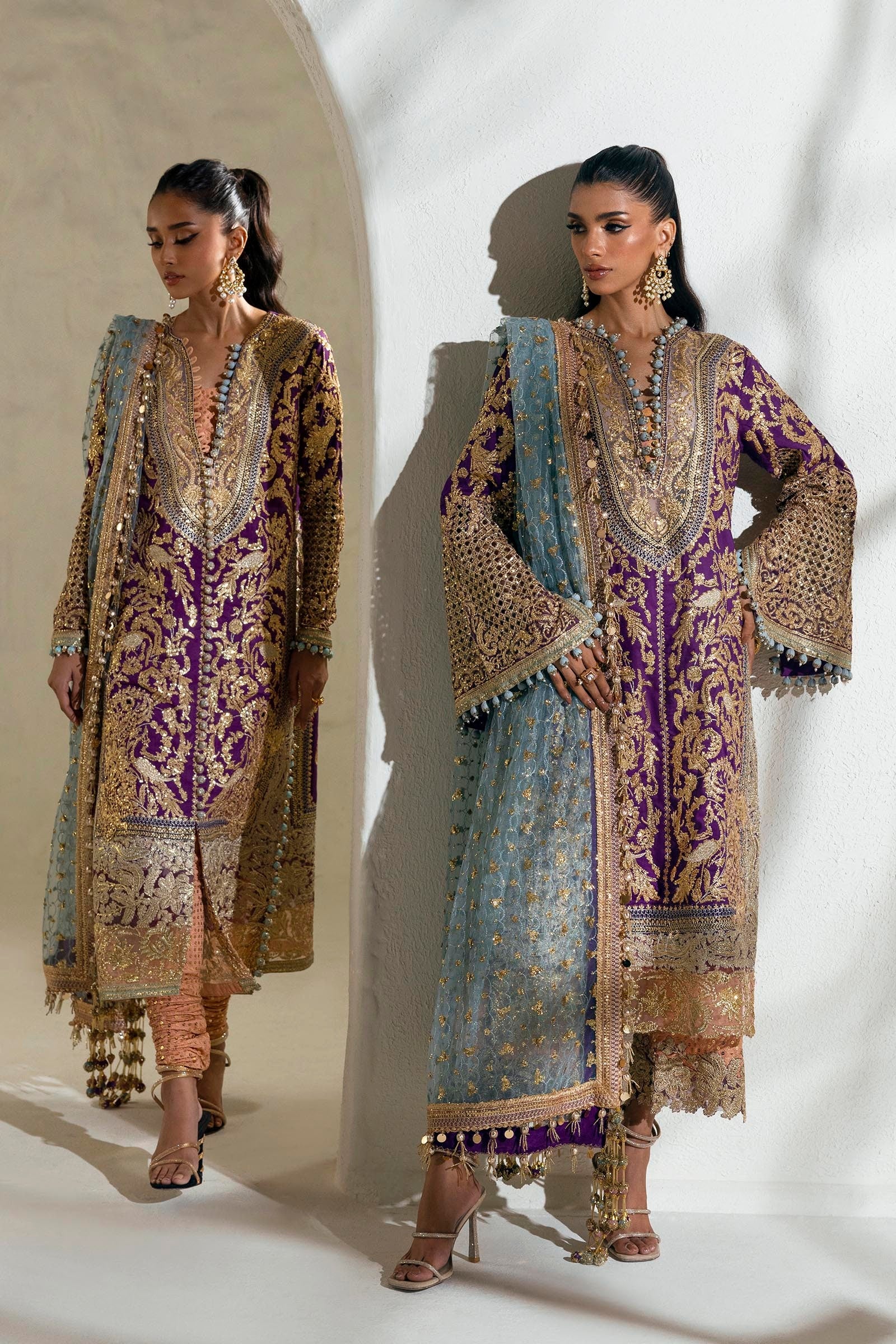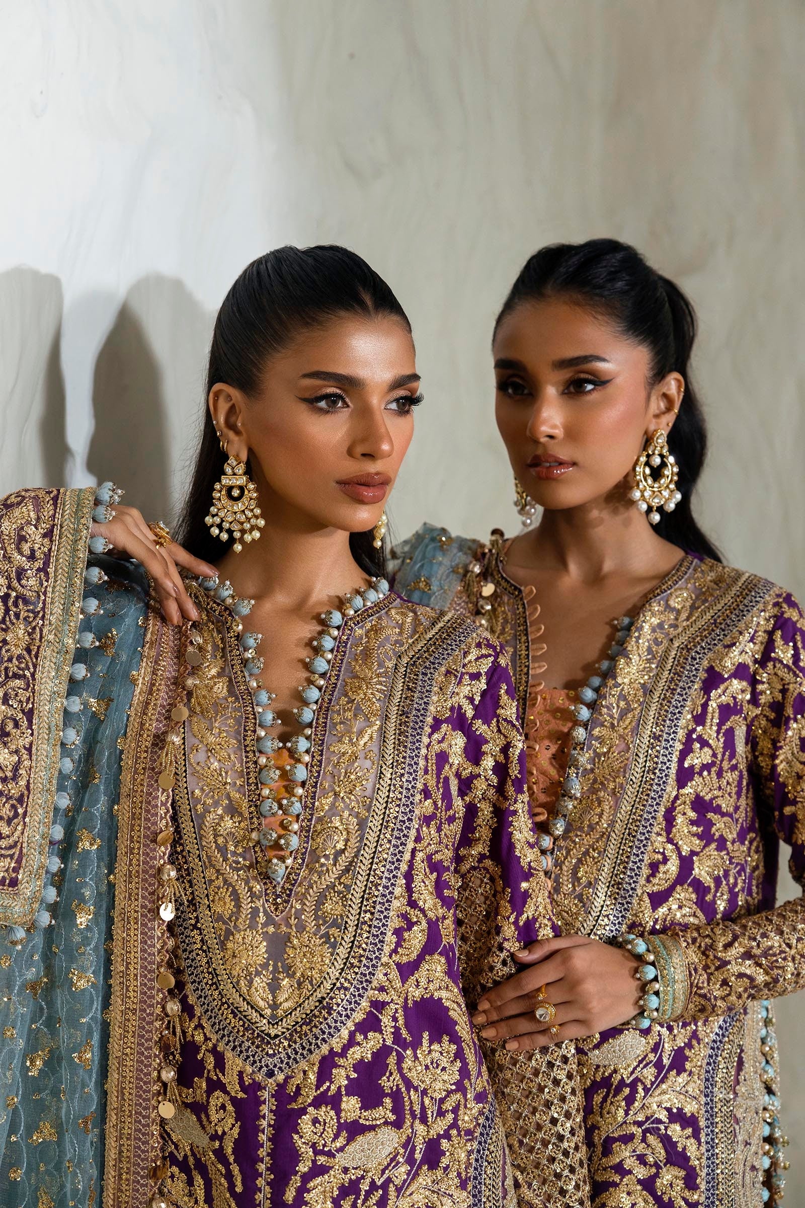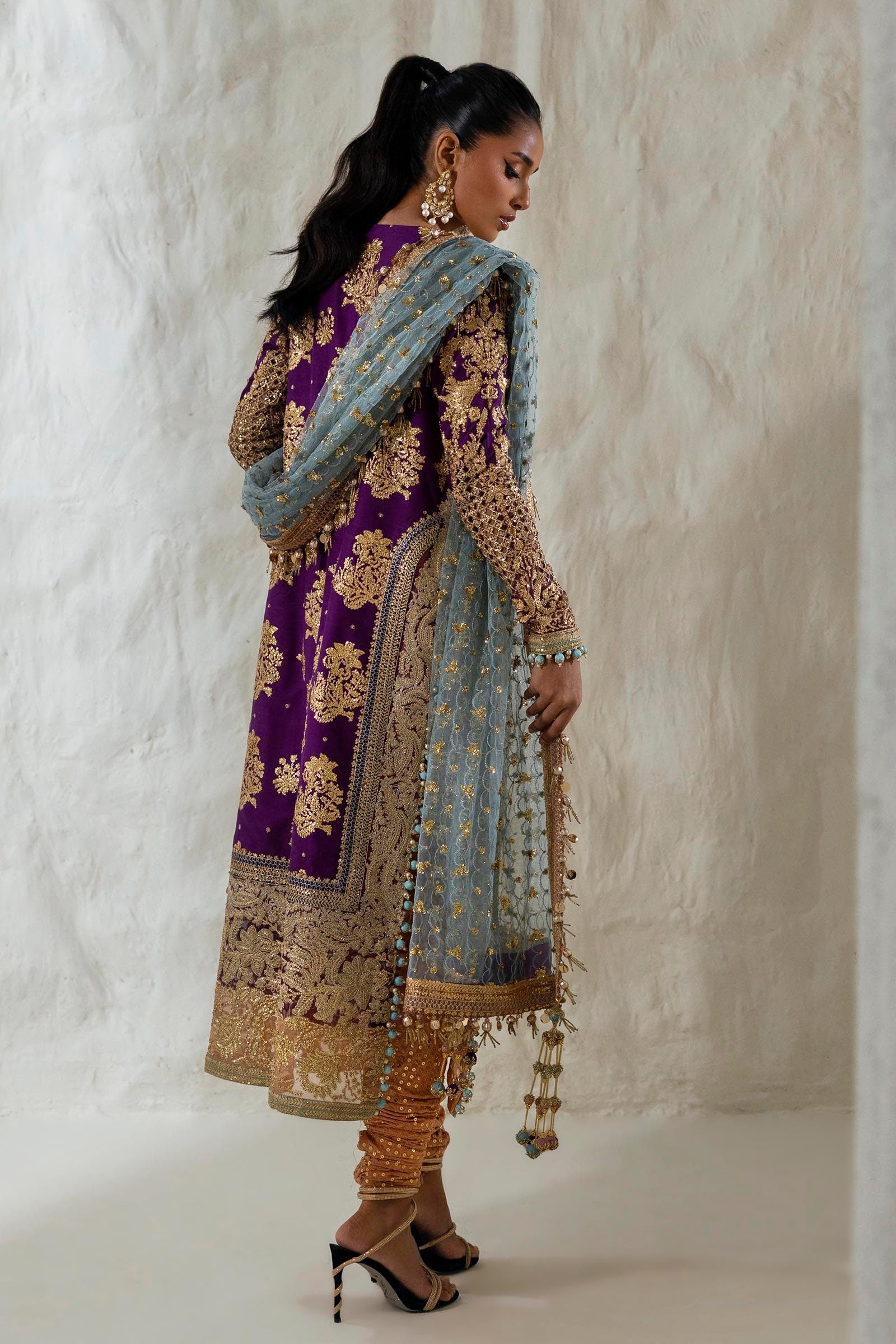 Front Side Borders Purple Organza  1 Pair