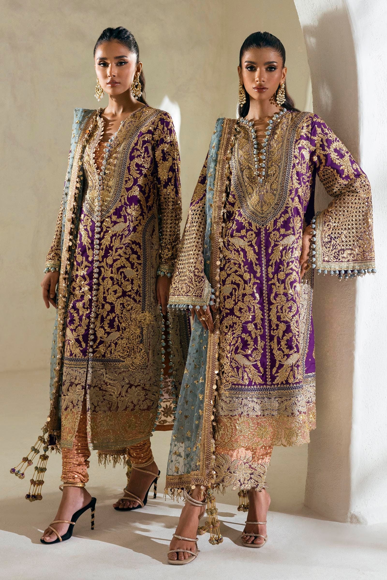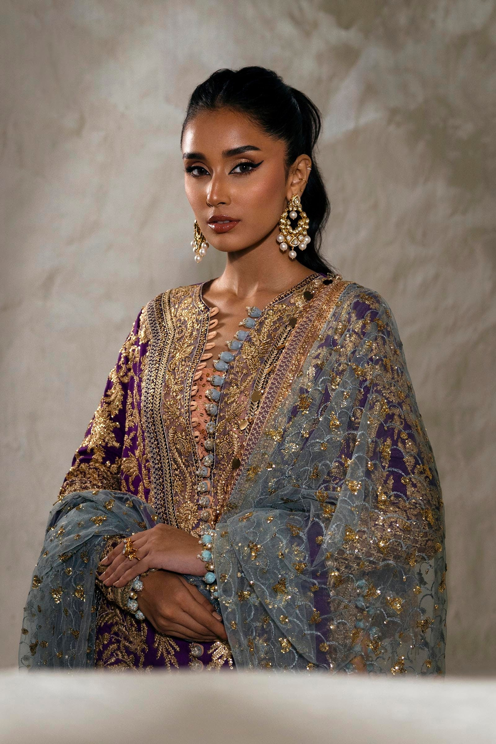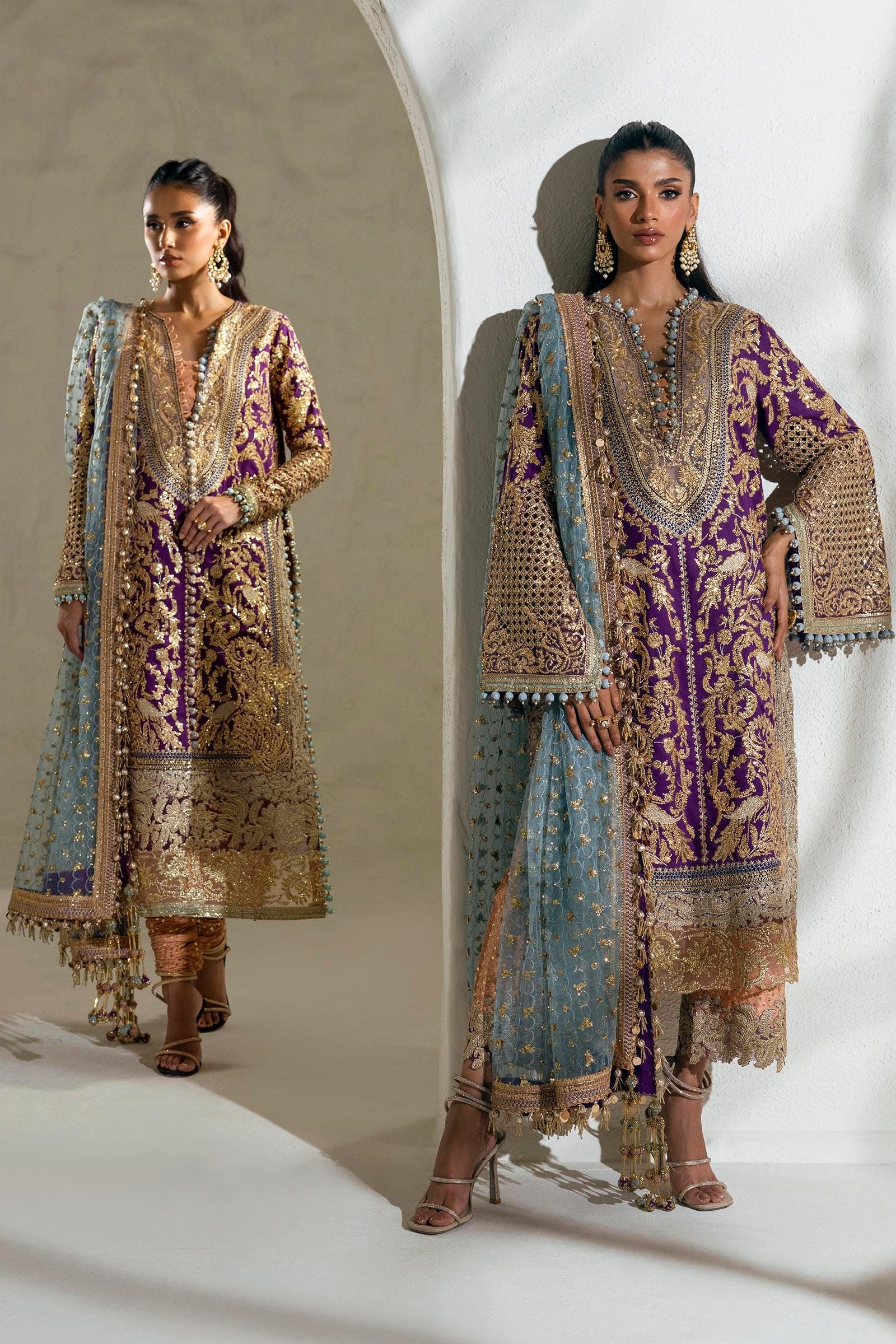 Front Side Borders Purple Organza  1 Pair
