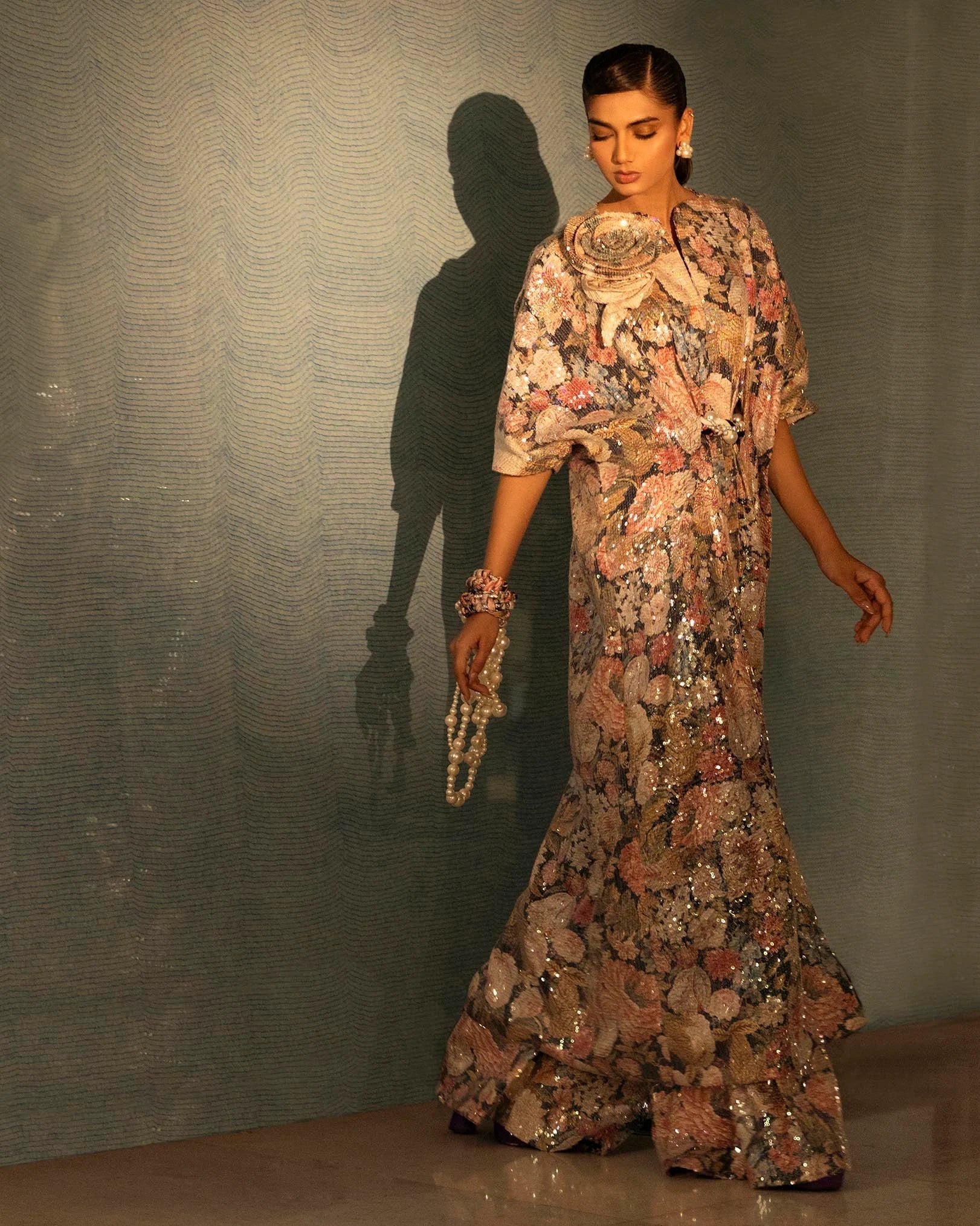 Our in-house design consultant will get in touch with you to assist on sizing and customization. They will personally send over your design calico and color swatches to ensure an ensemble that perfectly meets all your requirements. We tailor each outfit to your size and preference. For all international orders, our consultants will be available to meet with you via Zoom to get your measurements and tailor the outfit according to your size. We hope to customize your outfit to perfection to deliver the best couture ensemble to you.