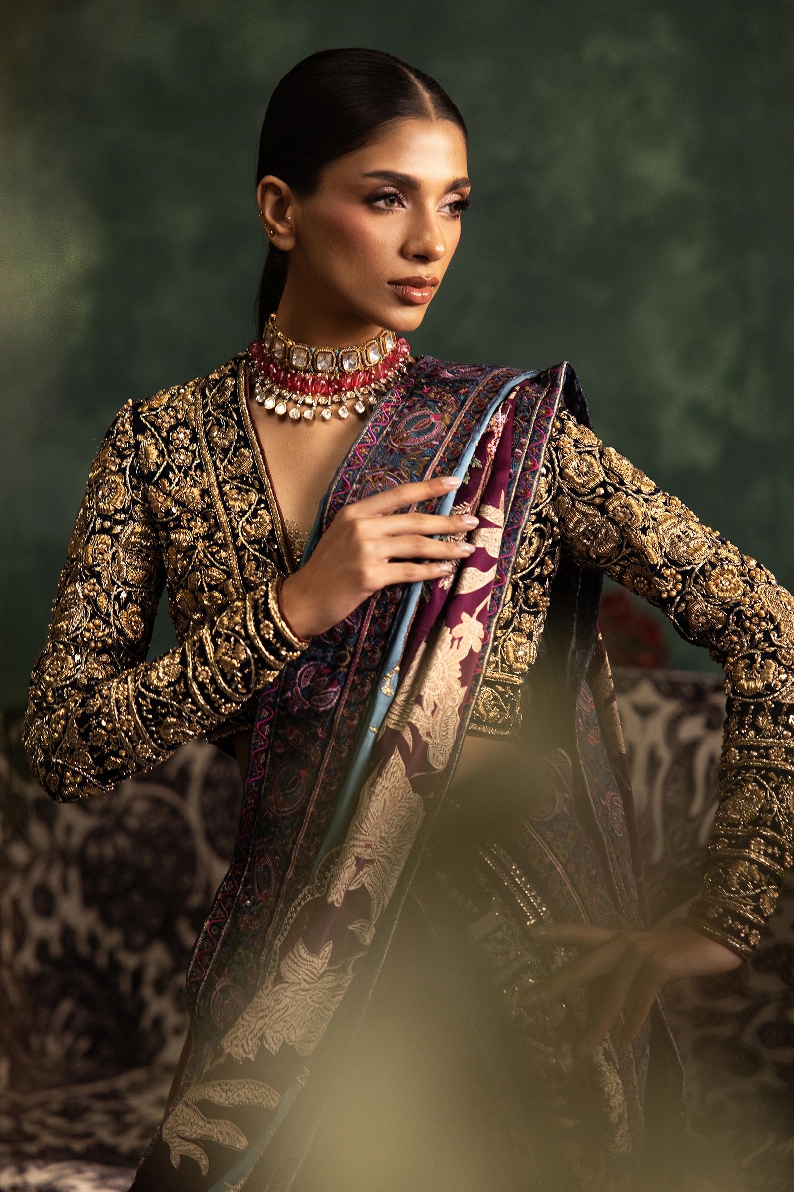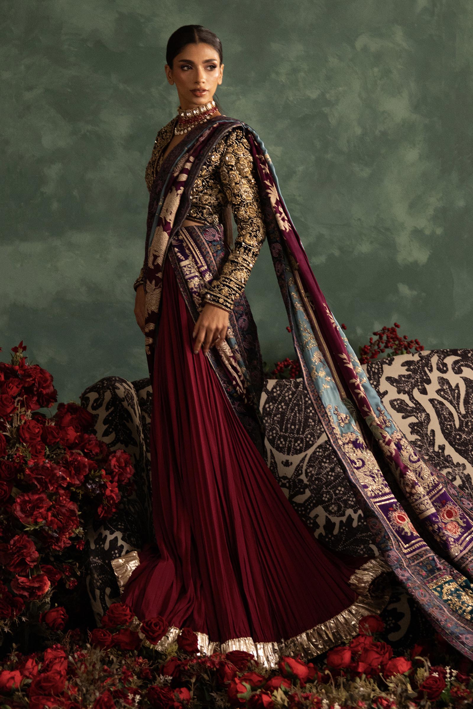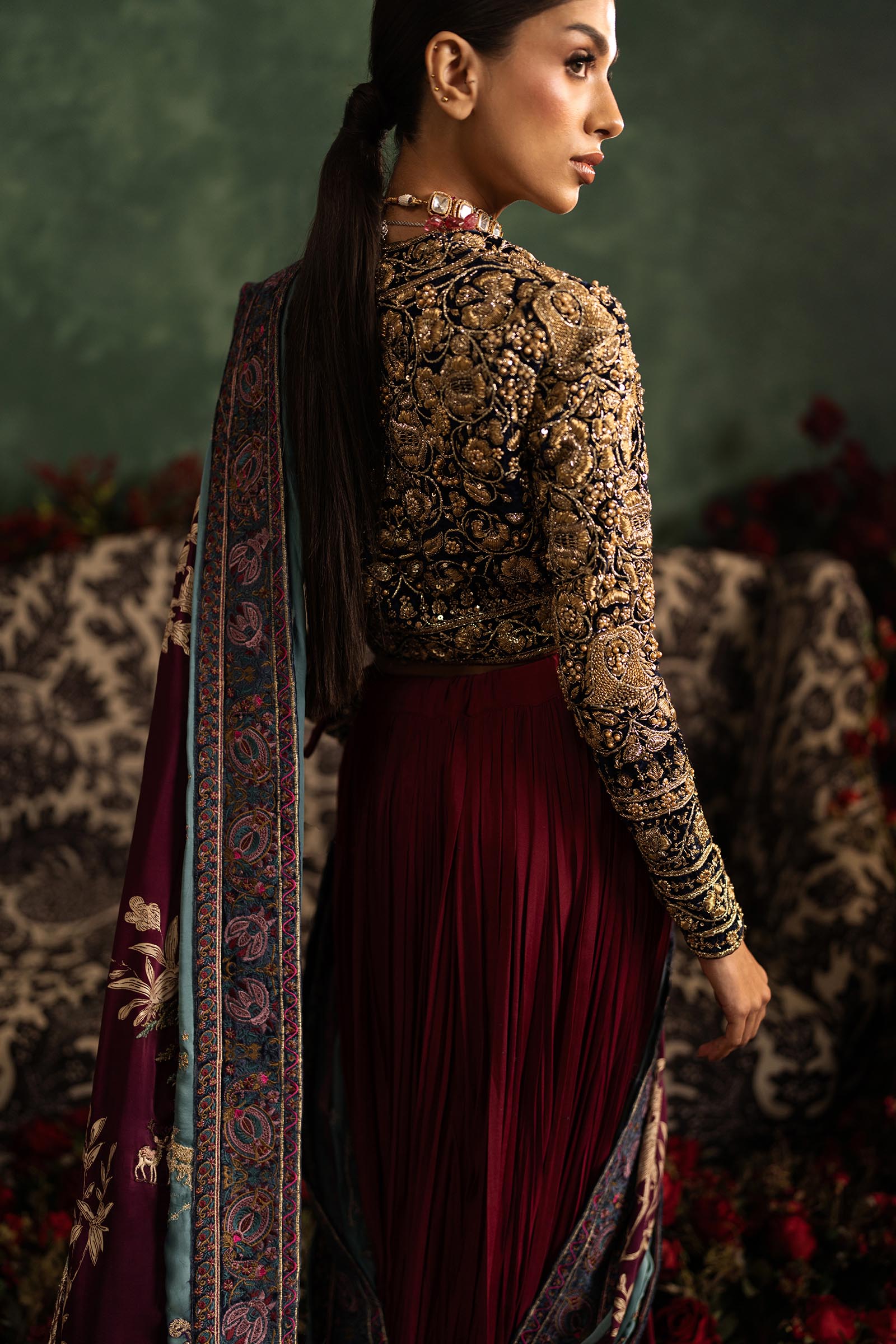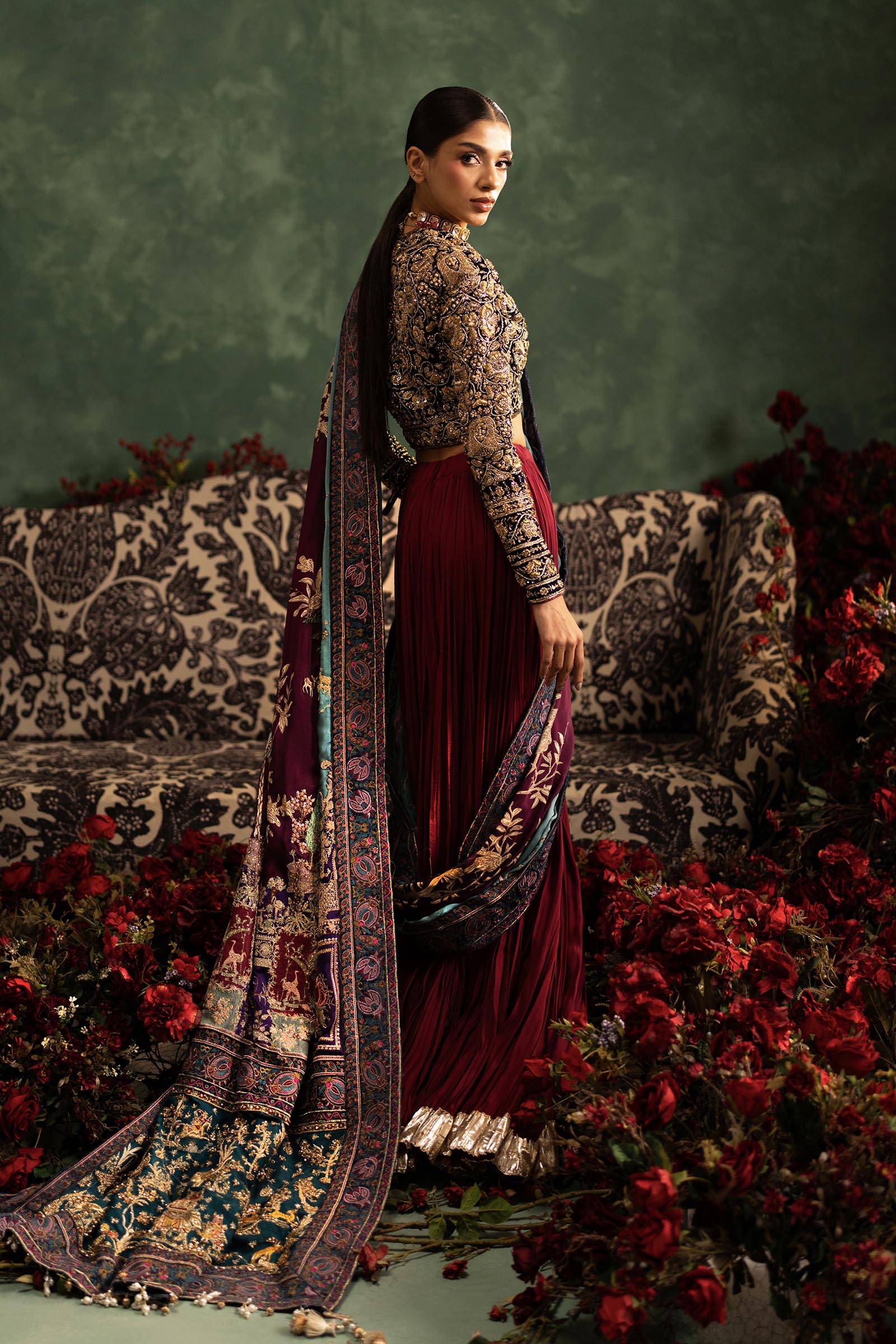 Our in-house design consultant will get in touch with you to assist on sizing and customization. They will personally send over your design calico and color swatches to ensure an ensemble that perfectly meets all your requirements. We tailor each outfit to your size and preference. For all international orders, our consultants will be available to meet with you via Zoom to get your measurements and tailor the outfit according to your size. We hope to customize your outfit to perfection to deliver the best couture ensemble to you.