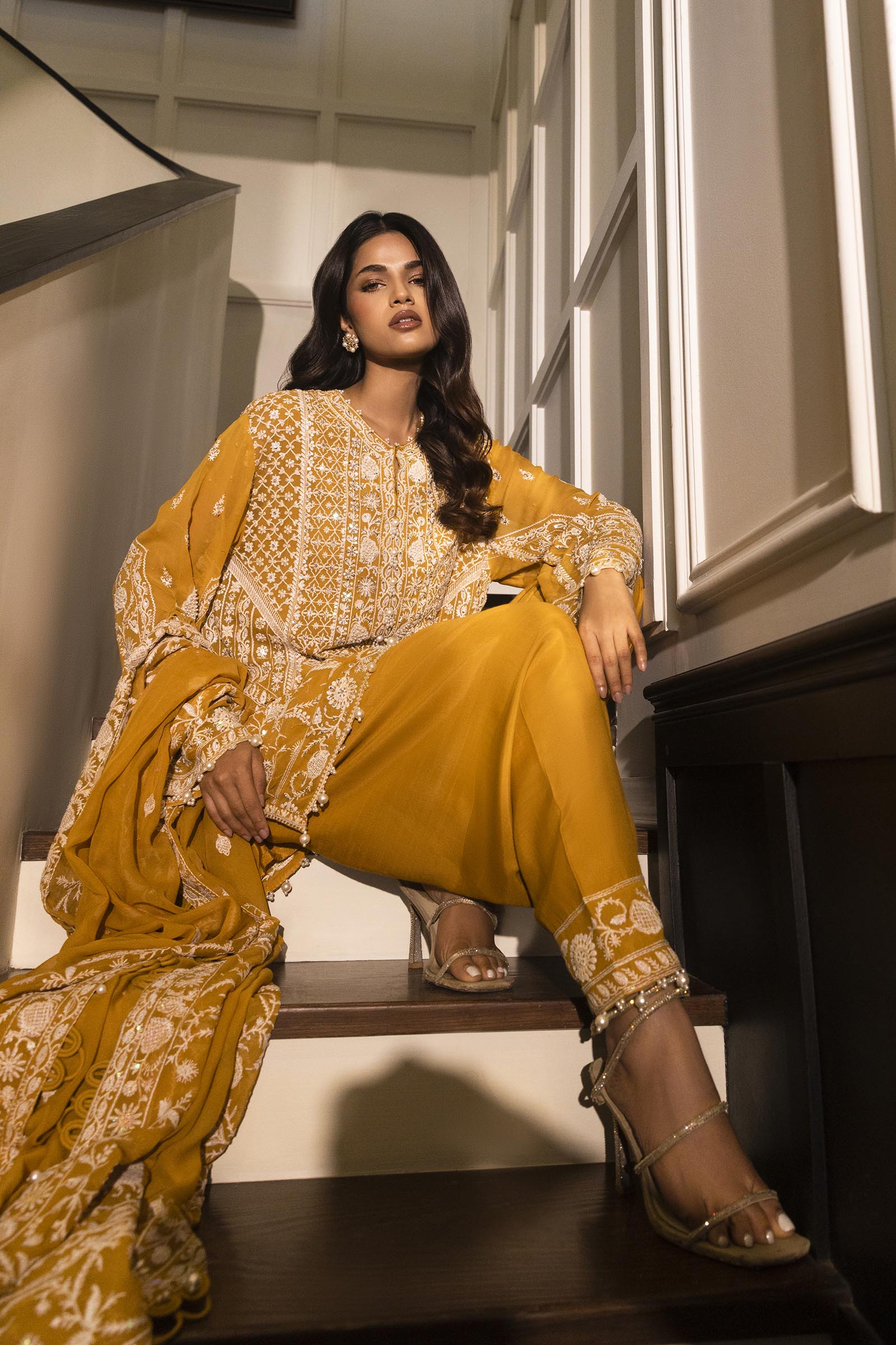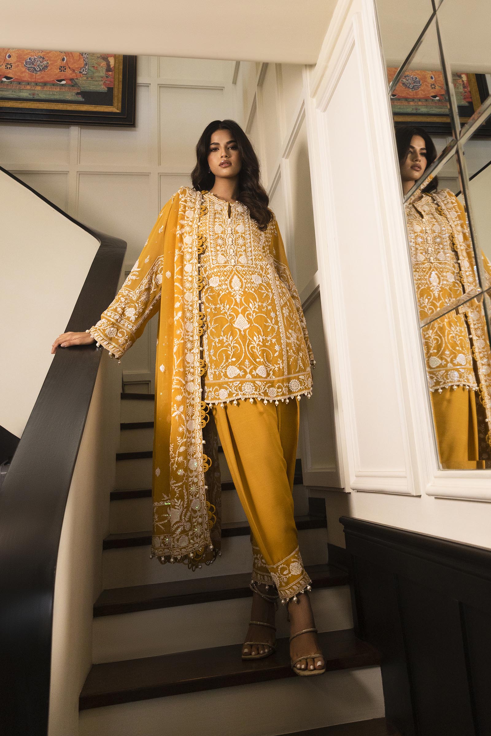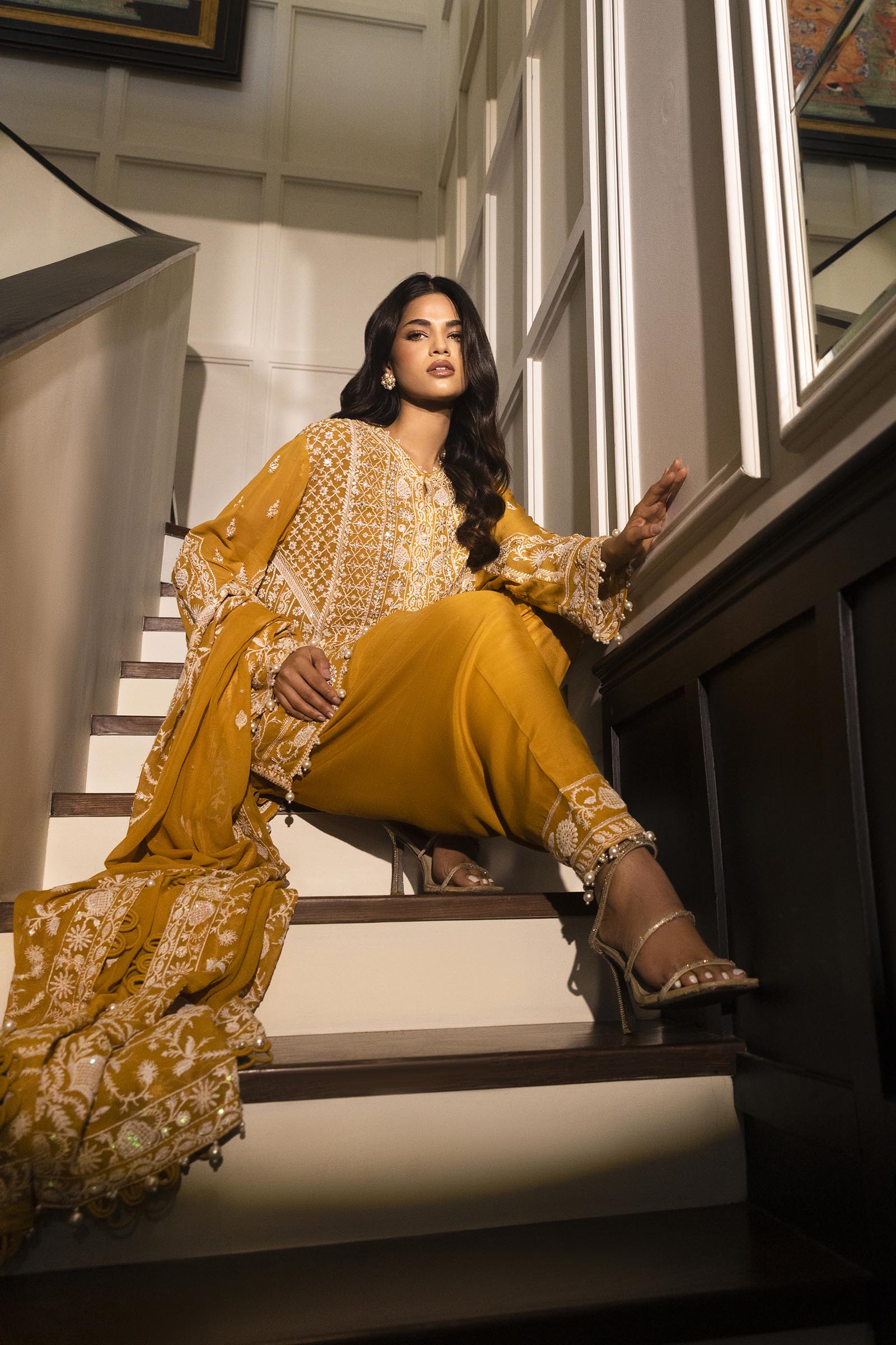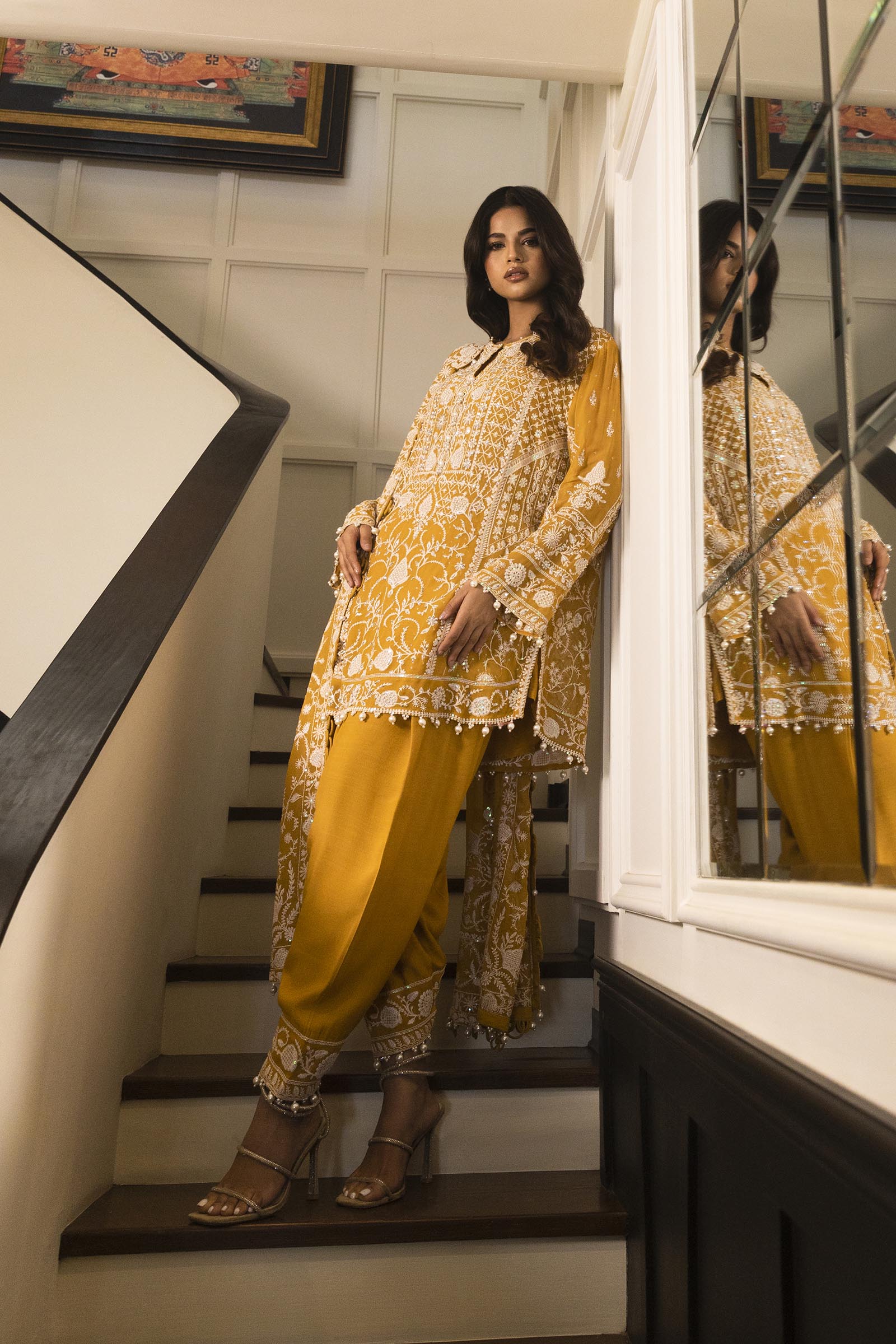 Our in-house design consultant will get in touch with you to assist on sizing and customization. They will personally send over your design calico and color swatches to ensure an ensemble that perfectly meets all your requirements. We tailor each outfit to your size and preference. For all international orders, our consultants will be available to meet with you via Zoom to get your measurements and tailor the outfit according to your size. We hope to customize your outfit to perfection to deliver the best couture ensemble to you.