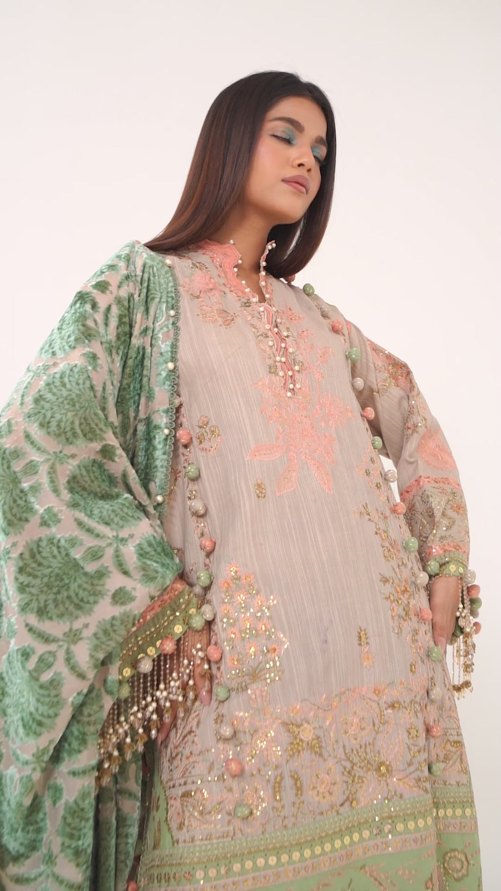 Dyed + Emb Back Kufl On Lawn 1 Piece