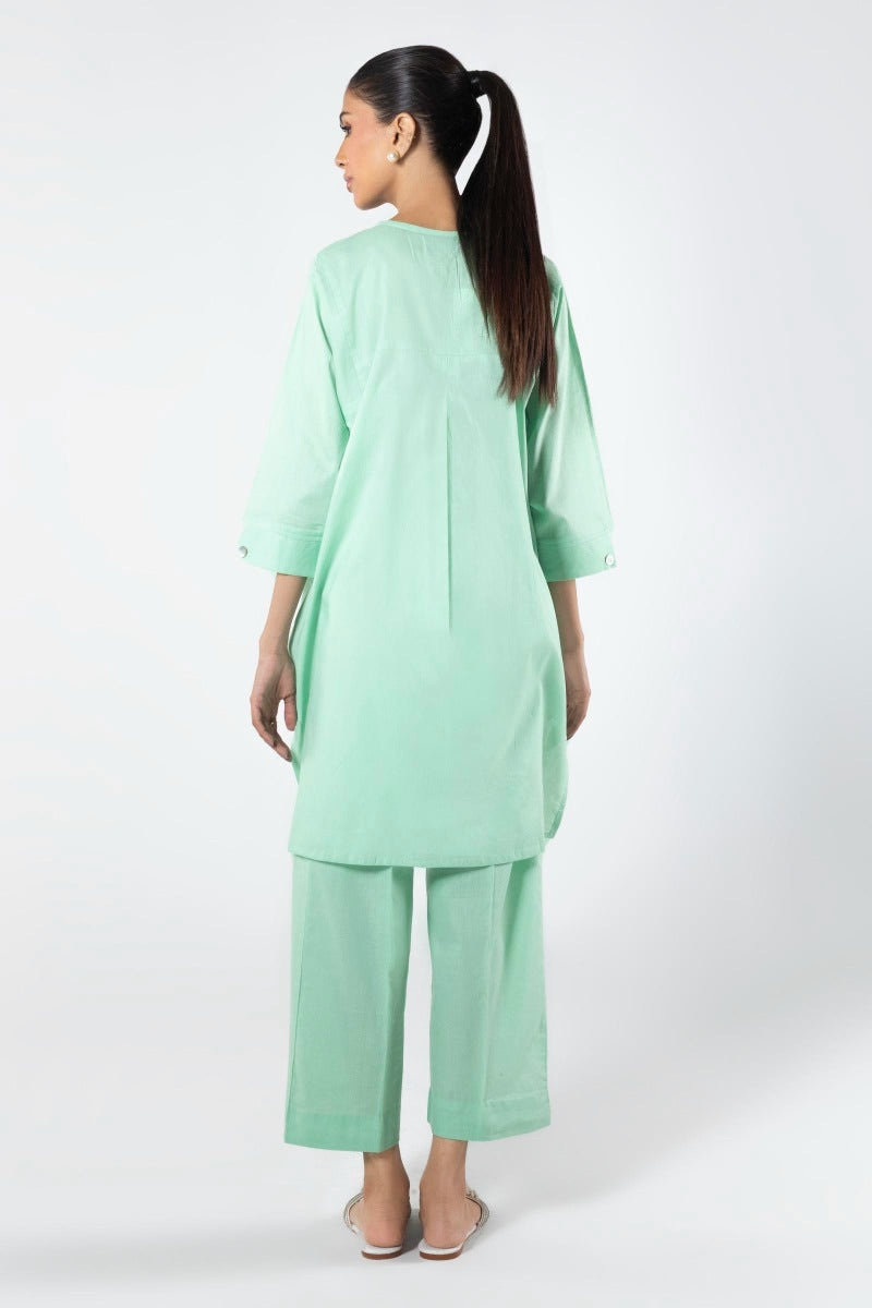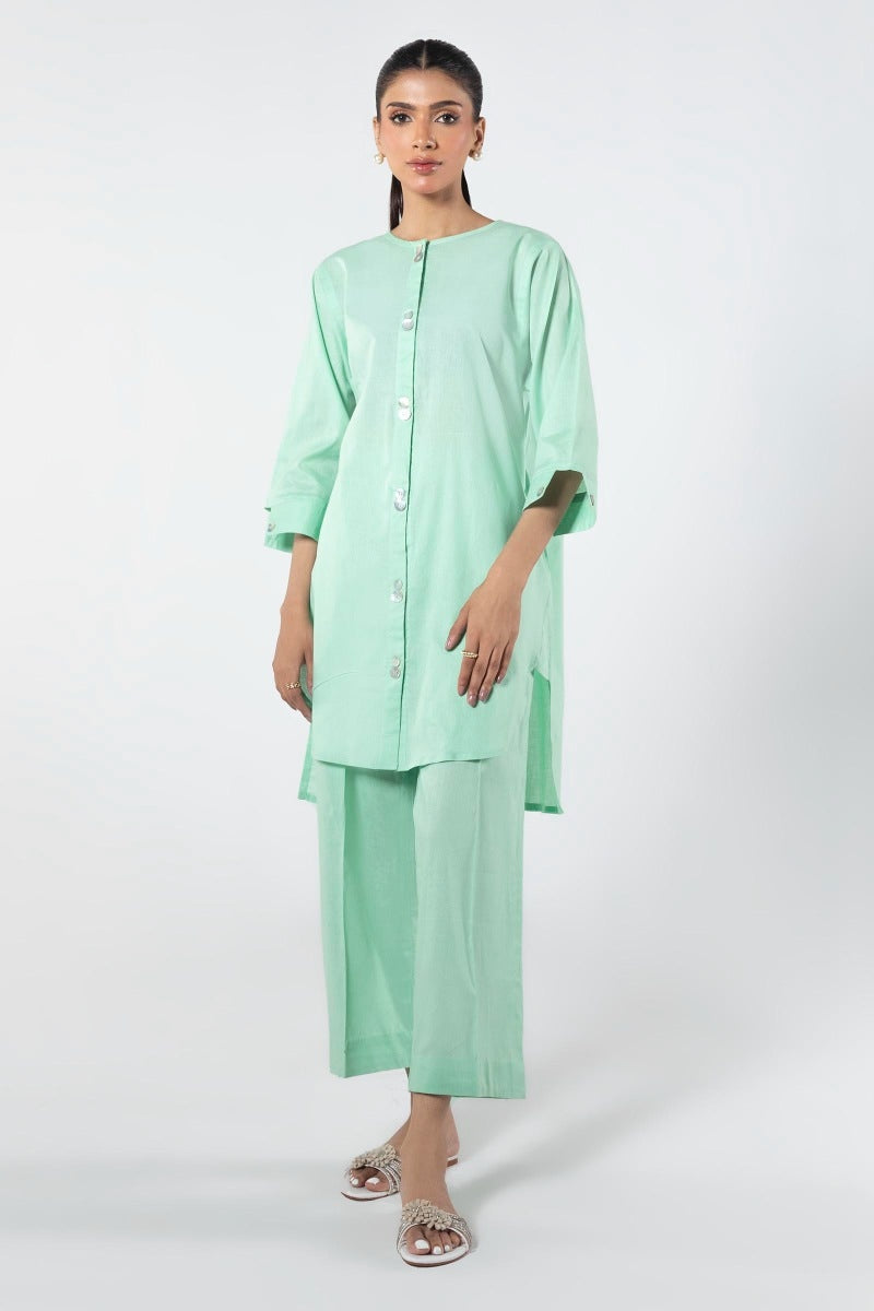 Description: Minty Fresh Delights: Buttoned Details Steal the Show.