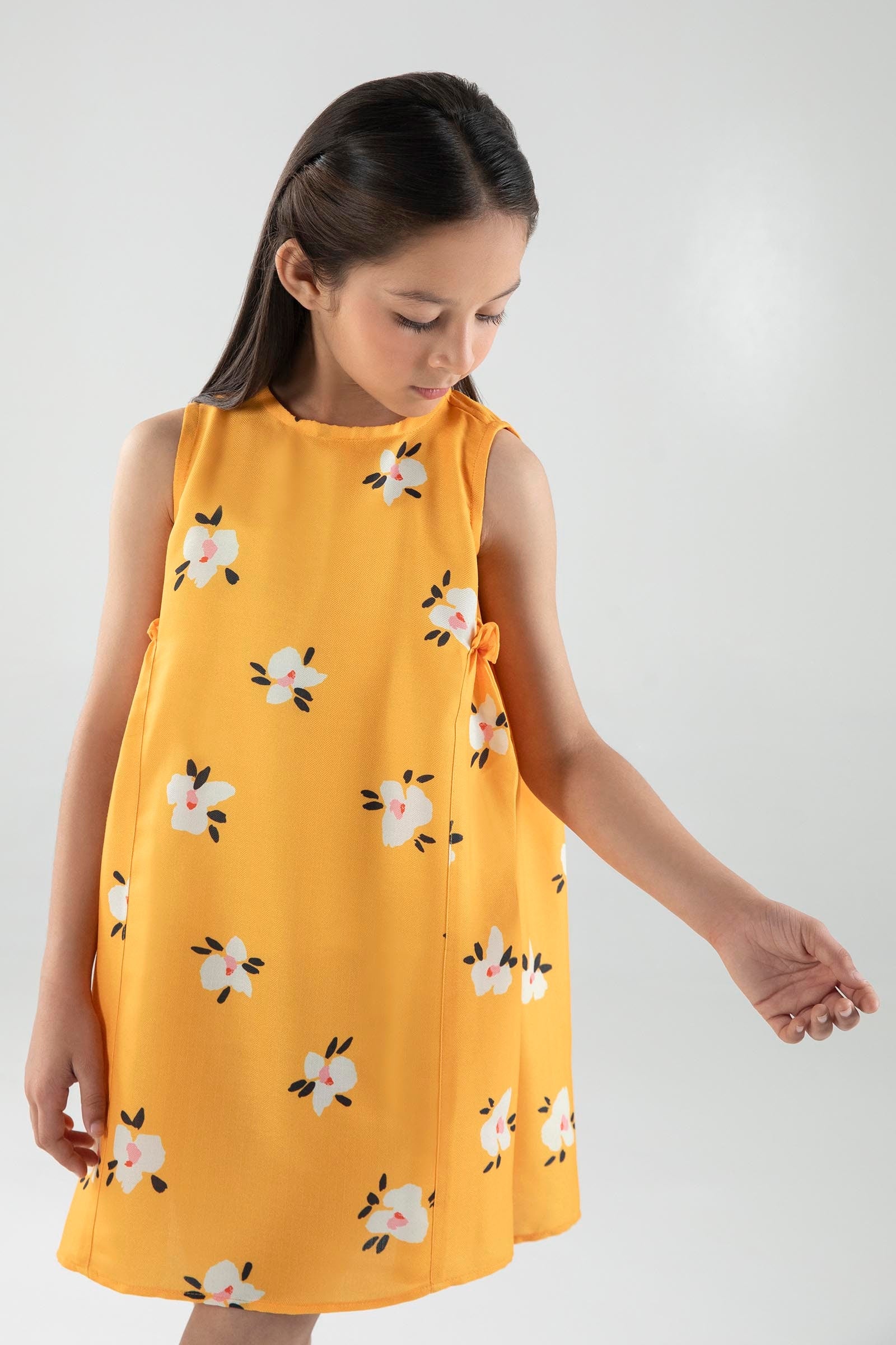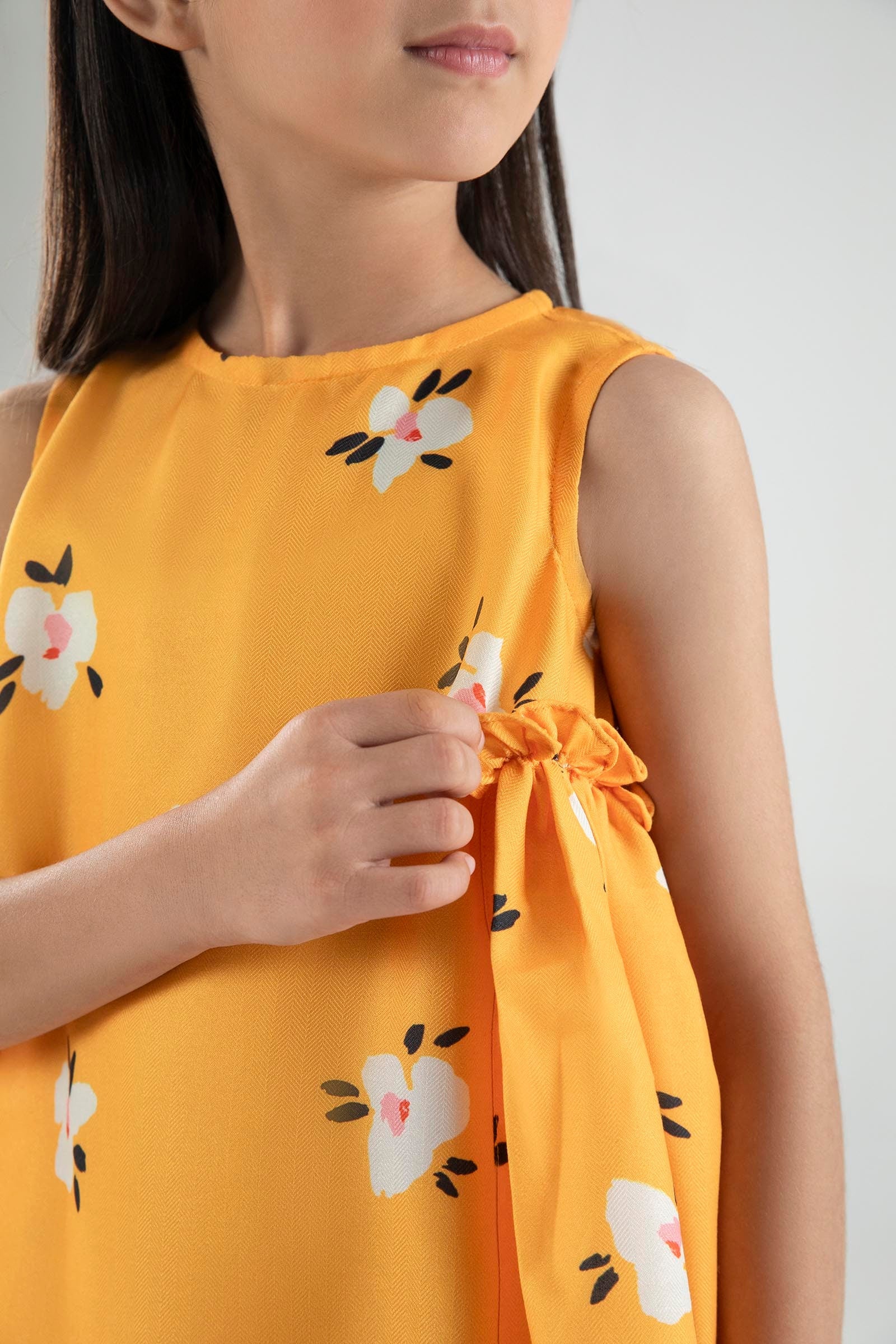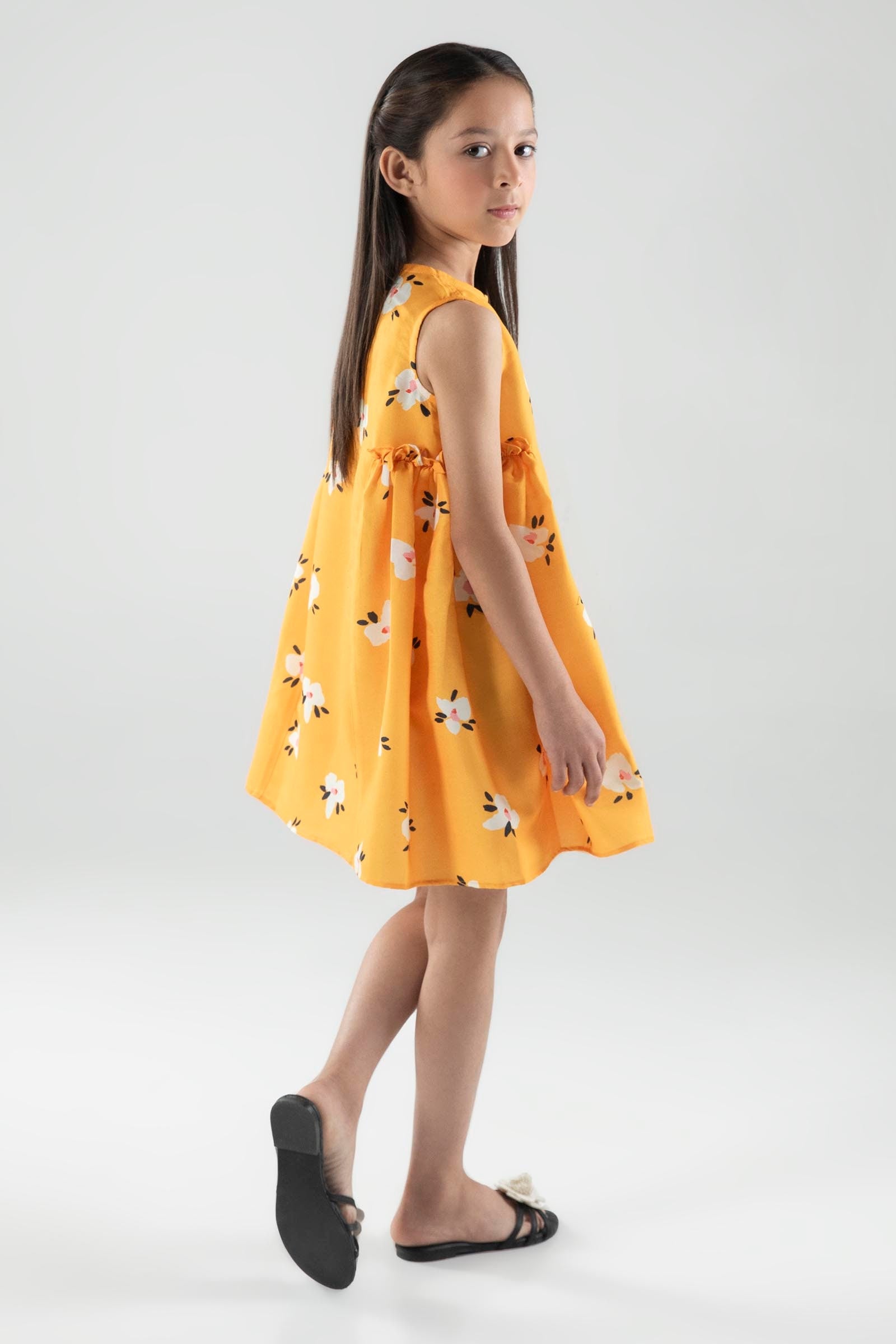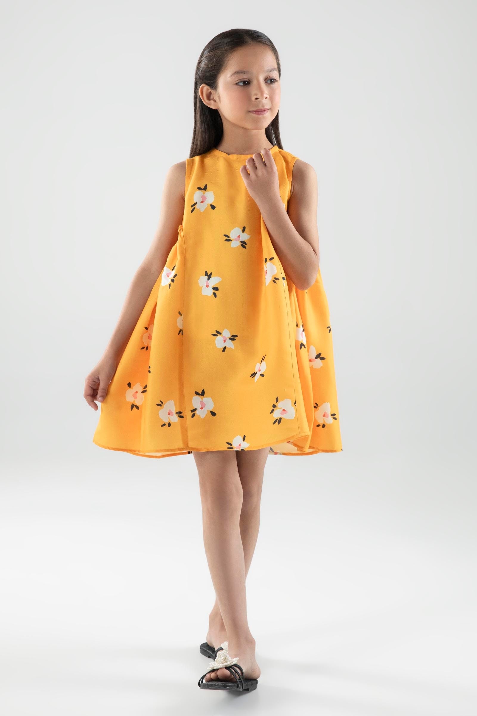 Description: Elevate your little ones summer wardrobe with this tangerine dress featuring white floral flowers