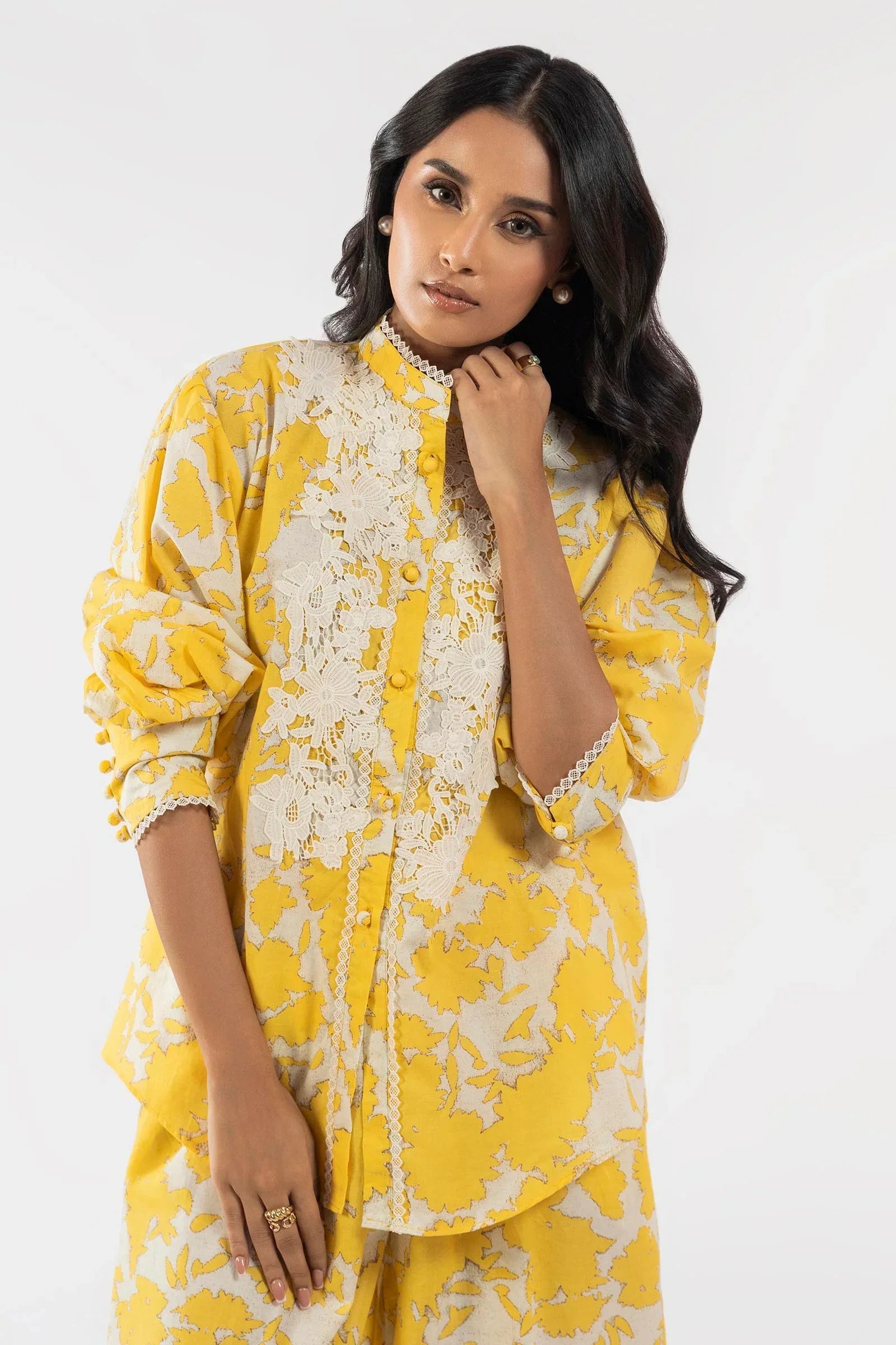 Sunny hues and contemporary lace combine for a stylish and vibrant look.