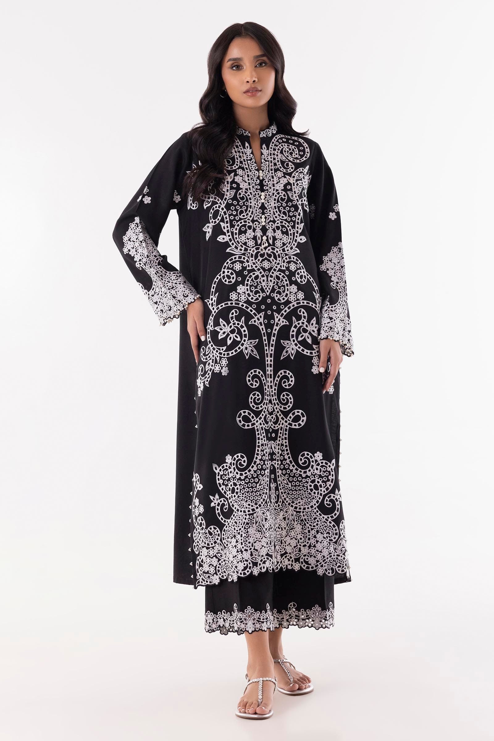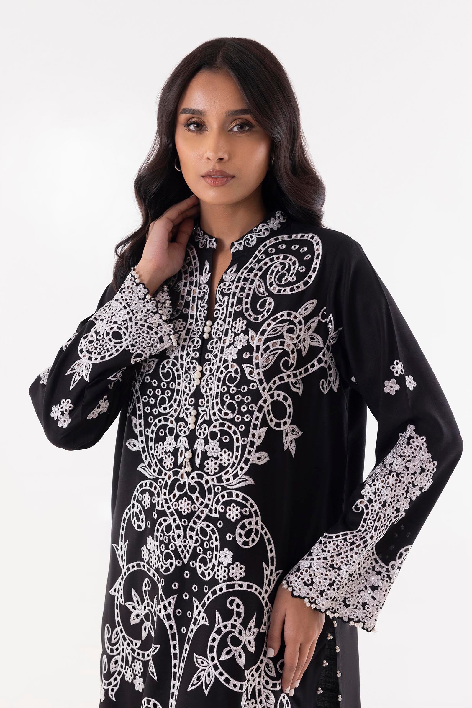 Stitched Black Embroidered Shirt + Culotte