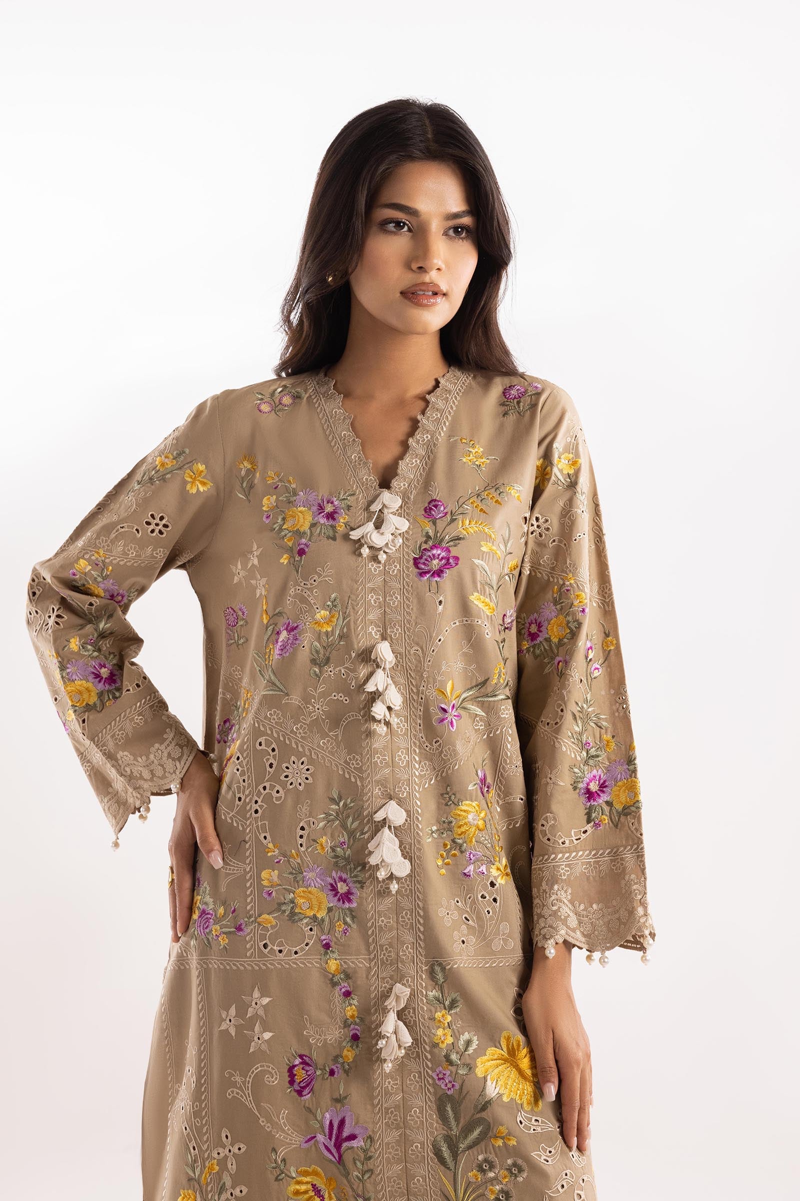 Description: Detailed and defined by muted tones with bright floral accents adding just the right touch of colour